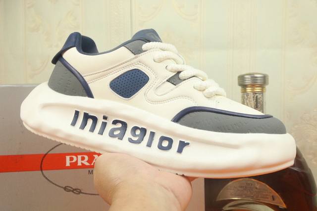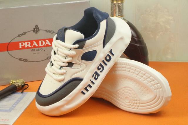 工厂价 高品质 Prada 普拉达新款上市著名奢侈品牌,专柜同步更新,意大利男鞋时尚杂志季刊封面主推款!鞋面采用意大利进口牛皮制作,透气网布内里。原版防滑轻质发泡运动大底,上脚舒适有型。 细节无可挑剔。码数38-43