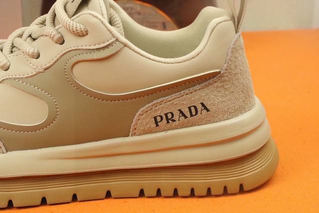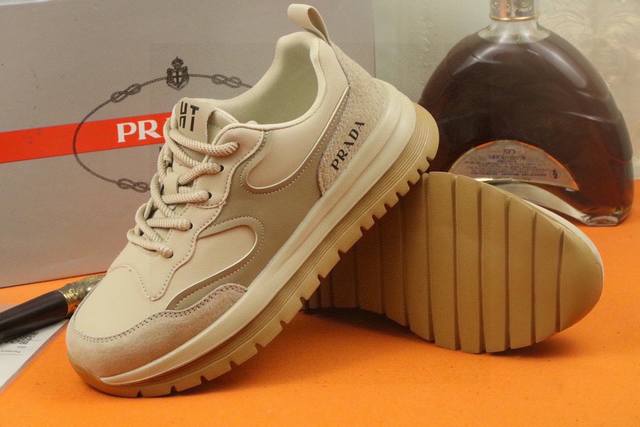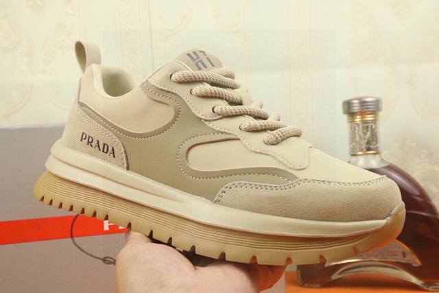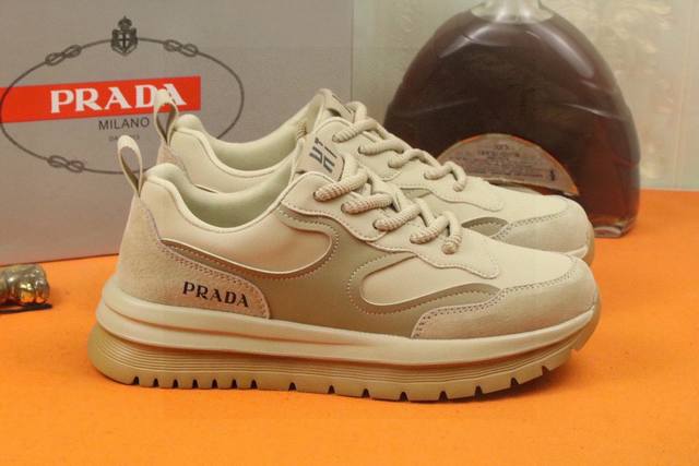 出厂价: Prada 普拉达新款男士厚底休闲运动鞋,运动鞋低帮系带款 款式时尚大方 头层牛皮拼接透气网面打造 柔软舒适透气...
