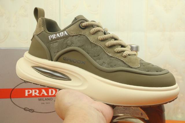 工厂P价 高版本 高品质新款Prada 普拉达 专柜同步上市, 新款男鞋、面料精选透气飞织面料。内里...