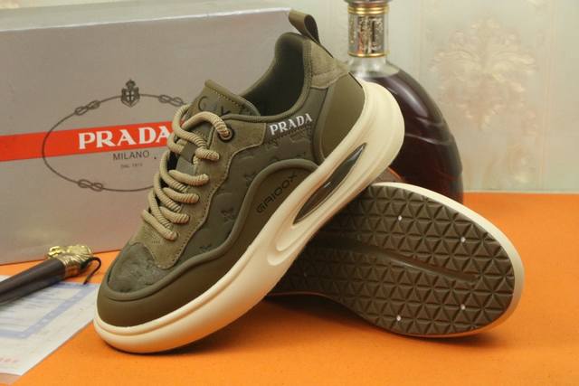 工厂价 高品质 Prada 普拉达新款上市著名奢侈品牌,专柜同步更新,意大利男鞋时尚杂志季刊封面主推款!鞋面采用意大利进口牛皮制作,透气网布内里。原版防滑轻质发泡运动大底,上脚舒适有型。 细节无可挑剔。码数38-43