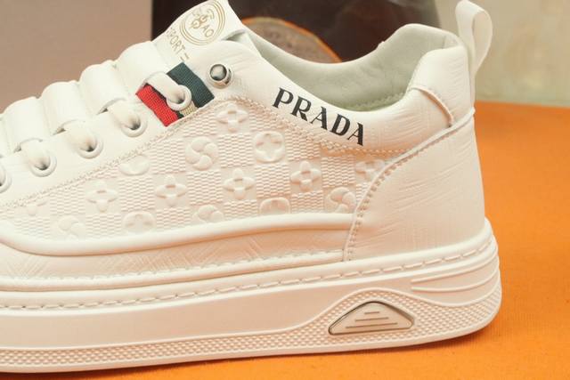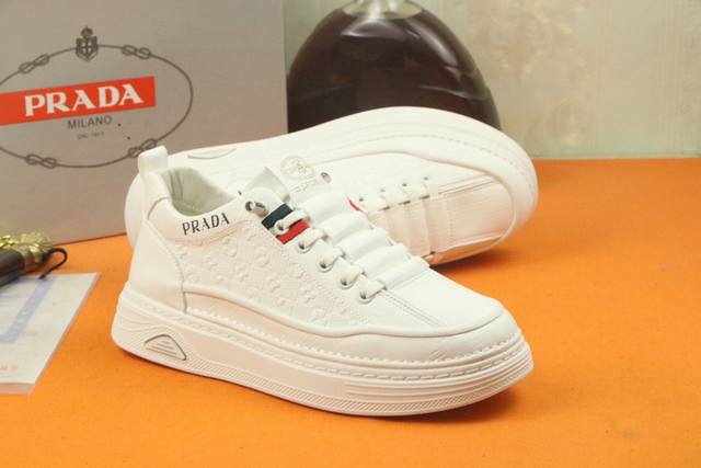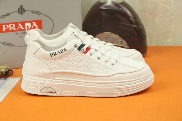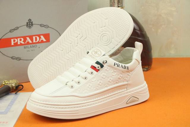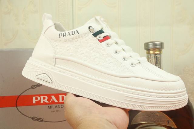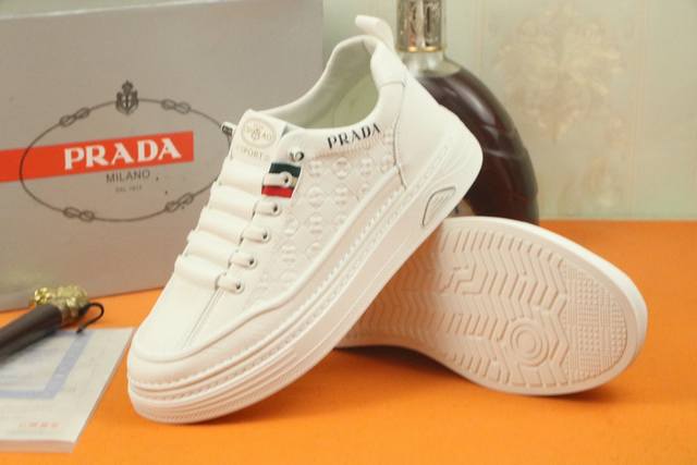 新款: 厂价: 普拉达prada* 最新爆款休闲鞋,顶端品牌奢侈~代购,顶级~质量。鞋面選用进口透气牛皮搭配材质透气猪皮垫脚...