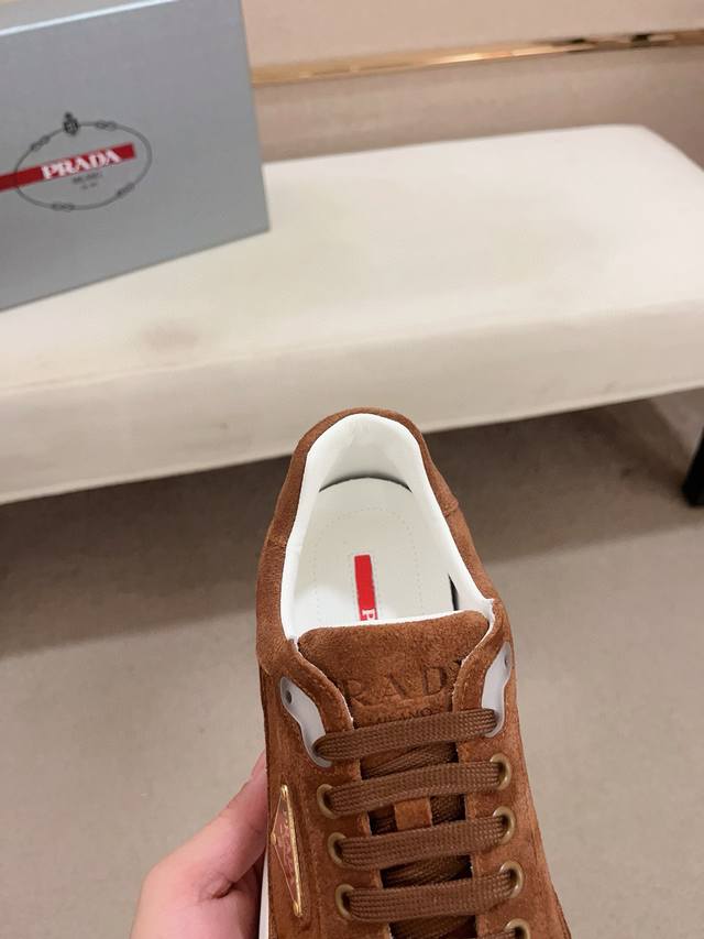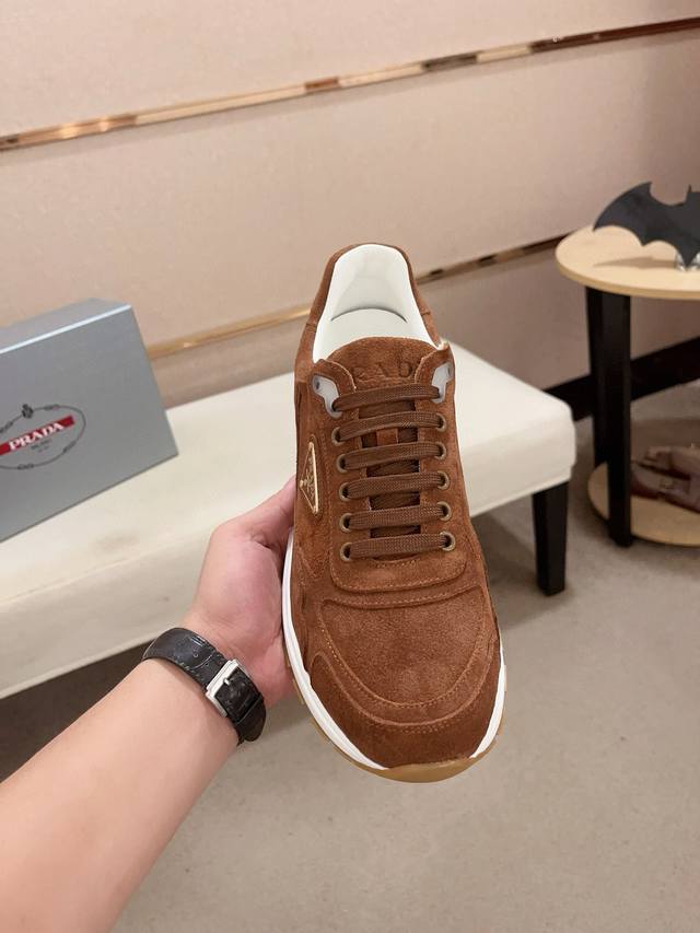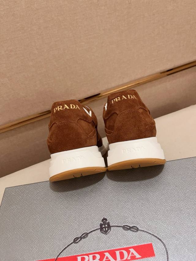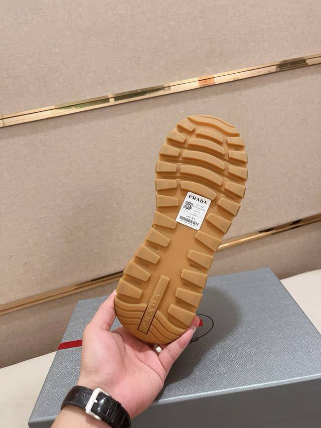 工厂价 高版本 高品质新款PRADA 普拉达 专柜同步上市, 新款男鞋、面料精选头层牛皮高超工艺制作而成。内里:全牛皮内里。高端气垫开模防滑橡胶大底,精美线条、简约大气,上脚舒服上挡次、休闲旅游。码数:38一45 可定做46 47 不退换