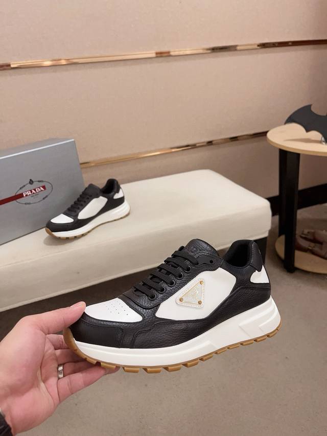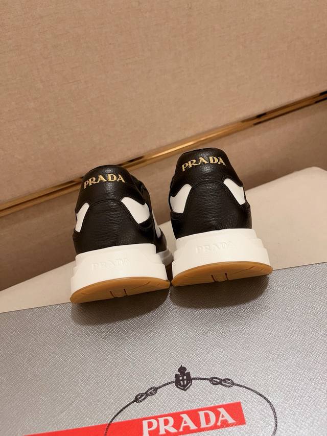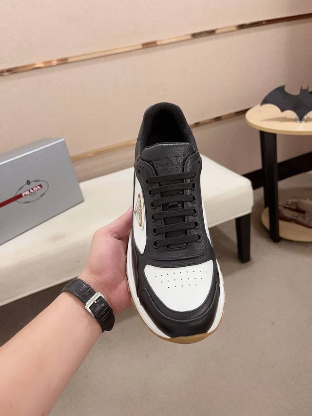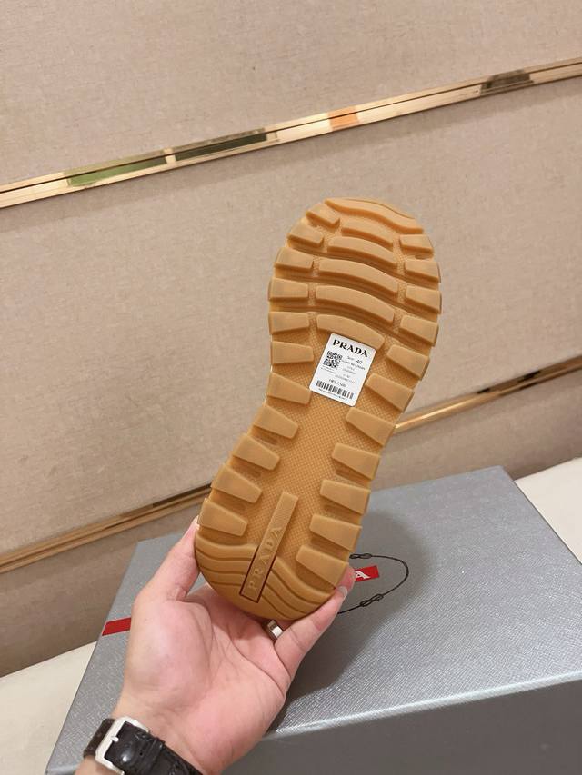 工厂价 高版本 高品质新款PRADA 普拉达 专柜同步上市, 新款男鞋、面料精选头层牛皮高超工艺制作而成。内里:全牛皮内里。高端气垫开模防滑橡胶大底,精美线条、简约大气,上脚舒服上挡次、休闲旅游。码数:38一45 可定做46 47 不退换
