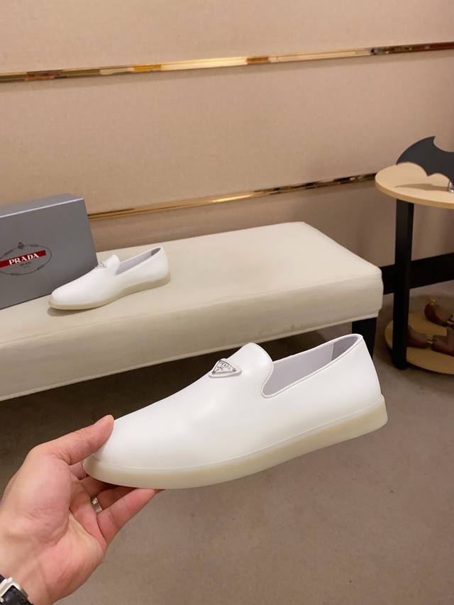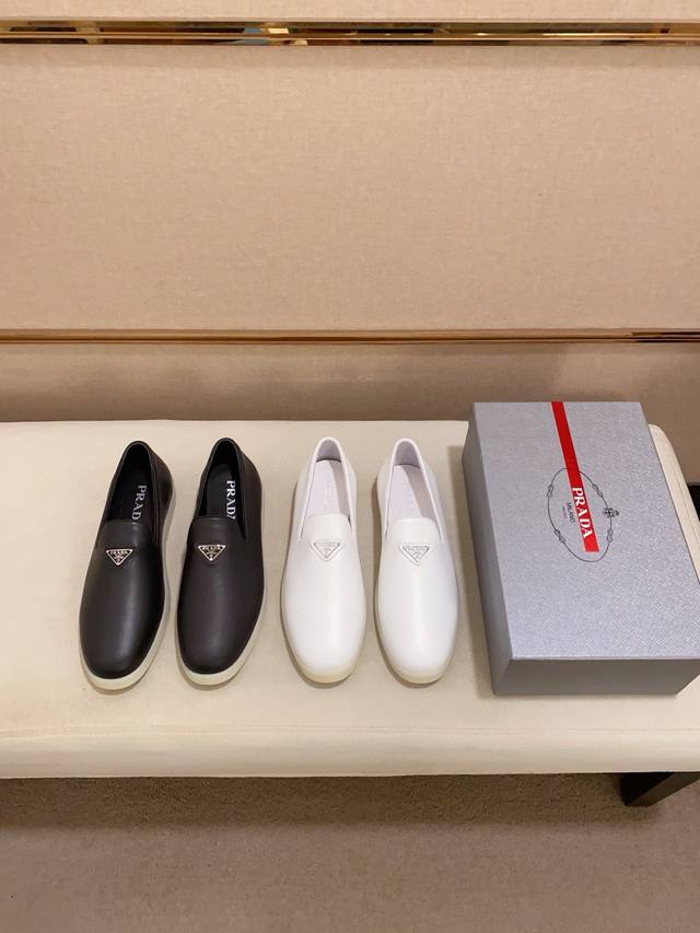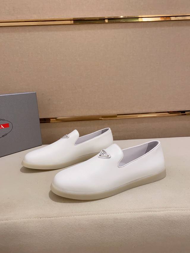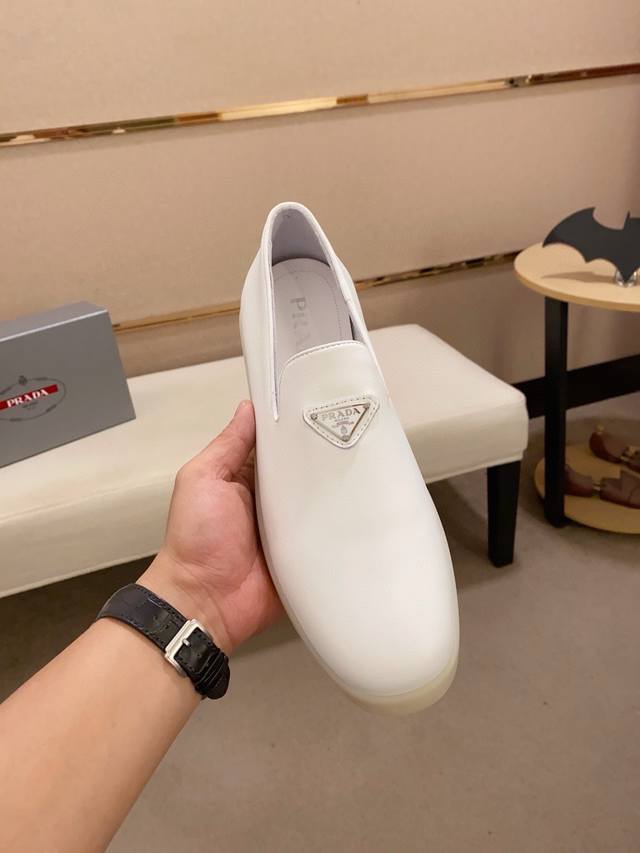 工厂价 高版本 高品质新款PRADA 普拉达 专柜同步上市, 新款男鞋、面料精选高丝光头层牛皮,纯手工艺制作而成。内里:全牛皮内里。高端气垫开模防滑橡胶大底,精美线条、简约大气,上脚舒服上挡次、休闲旅游。码数:38一44 可定做45