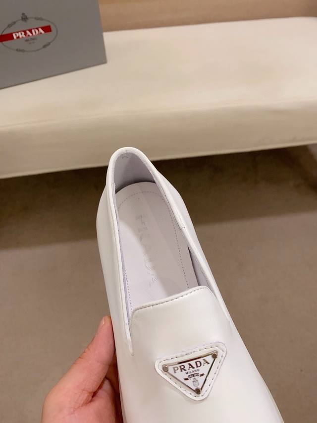 商品商标:Prada 普拉达 商务休闲皮鞋 正码码数: 38-45 商品材料:精选 漆光牛皮鞋面 牛皮内里 原版大底