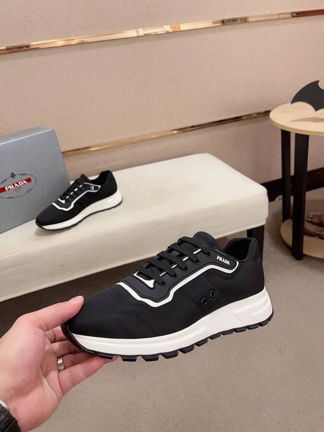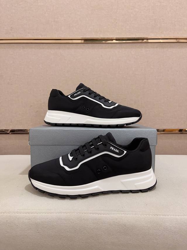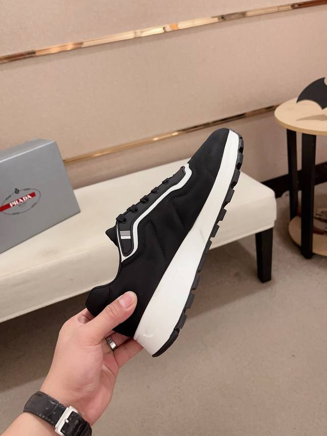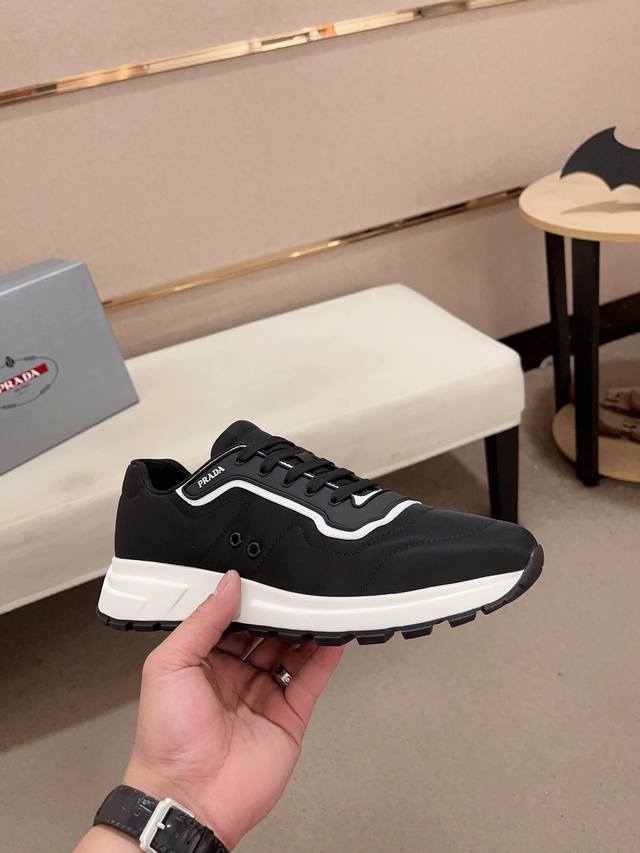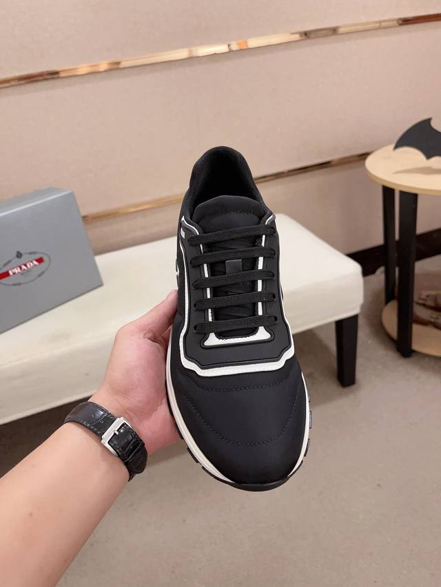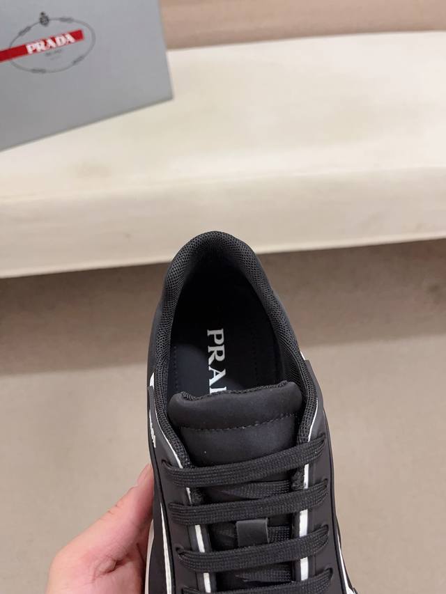 工厂价 高版本 高品质新款PRADA 普拉达 专柜同步上市, 新款男鞋、面料精选高科技滴胶工艺制作而成。内里:透气网布内里。高端气垫开模防滑橡胶大底,精美线条、简约大气,上脚舒服上挡次、休闲旅游。码数:38一44 可定做45不退换
