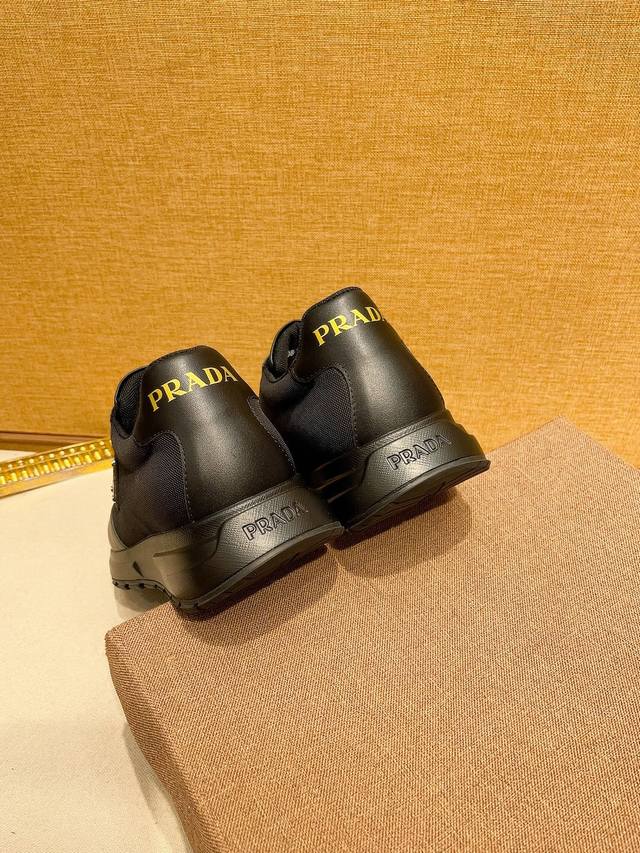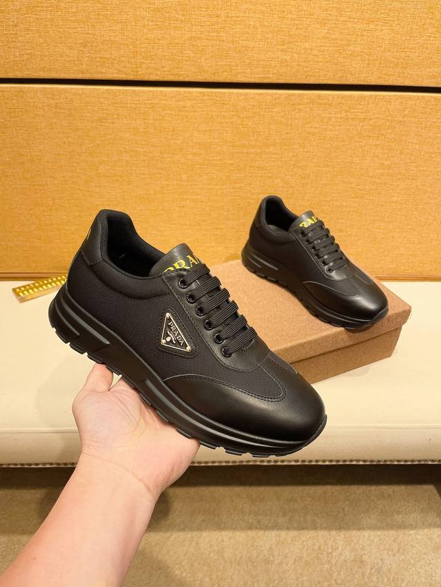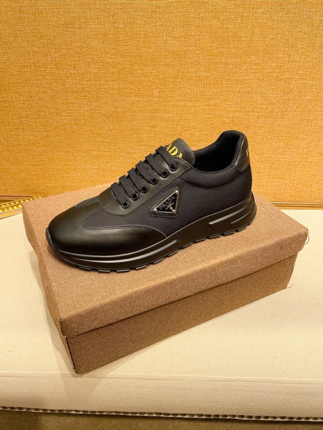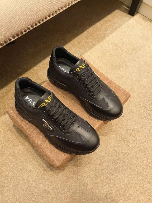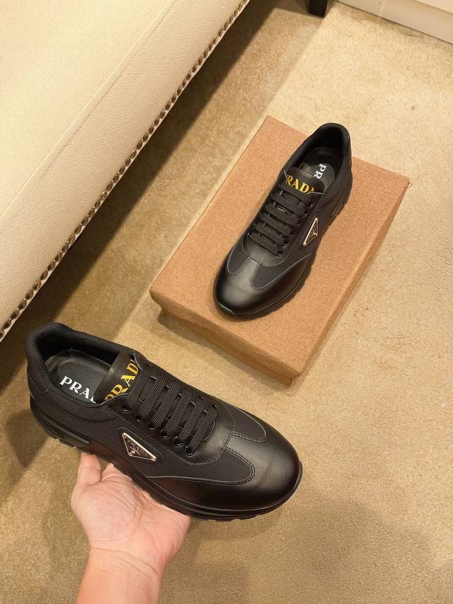 工厂价: PRADA普拉达 男鞋专柜爆款,官网同步,高品质出货原版牛皮拼接网面+牛皮内里,原厂原版底,码数:38-45 45定做不退换