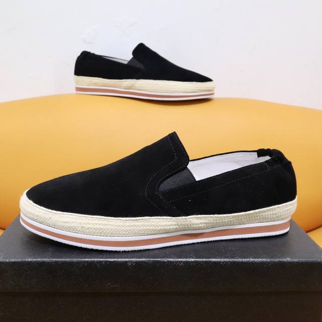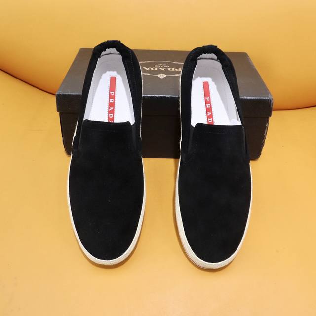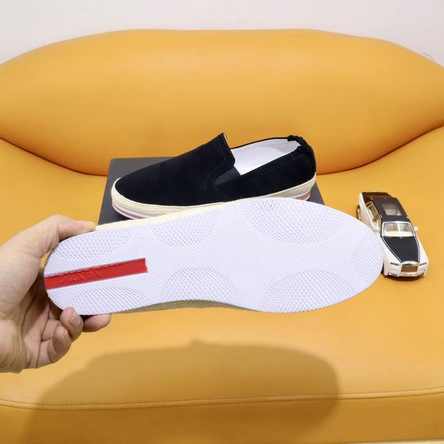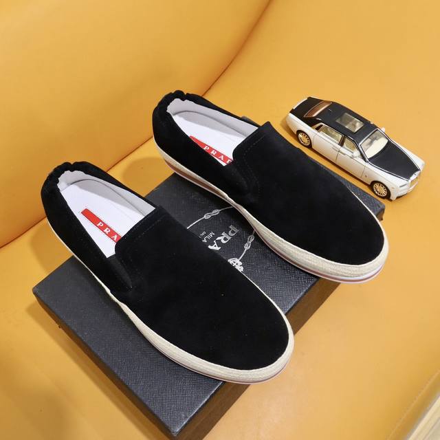 工厂价: Prada-普拉达 ~市场潮款男鞋鞋 2024年主推原单货:官网直营店有售!此款充分展现设计师的神作!男士高端休闲板鞋 懒人套脚 、四季很流行的乐福男