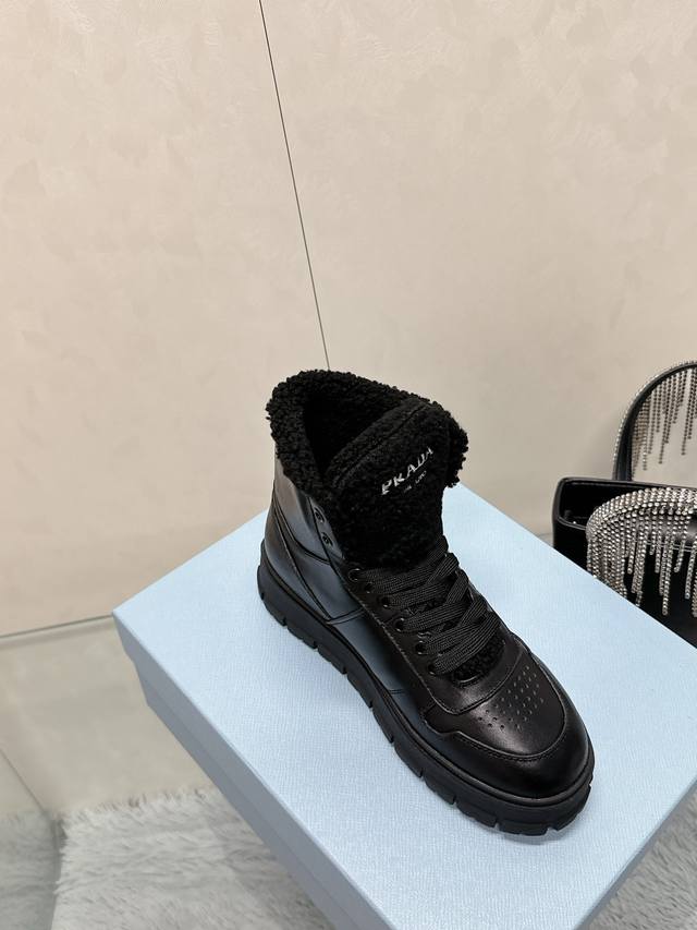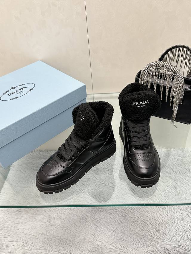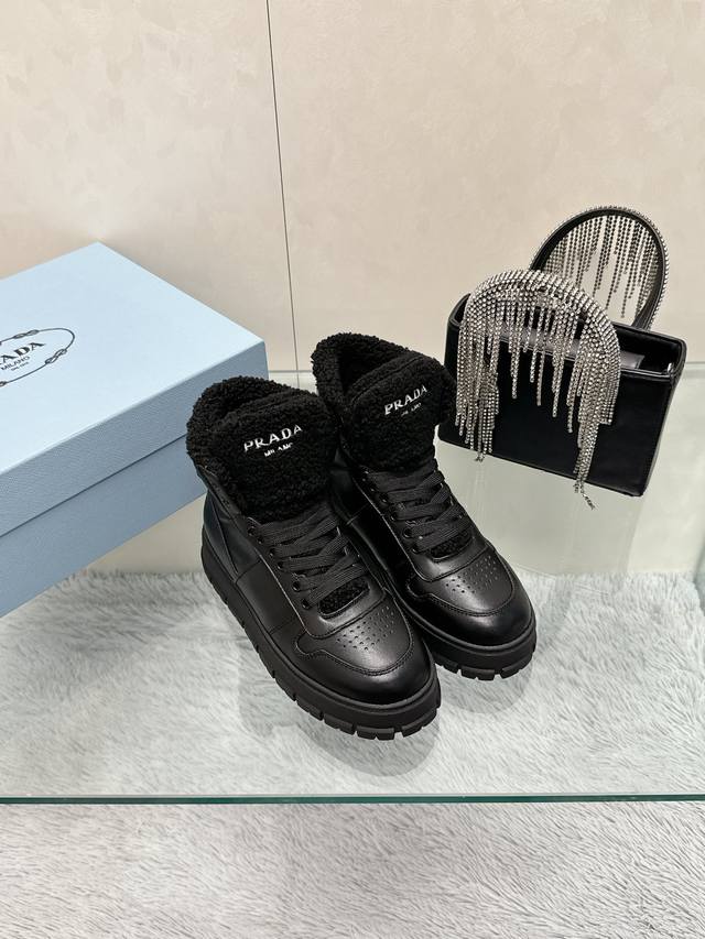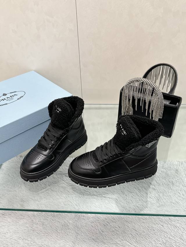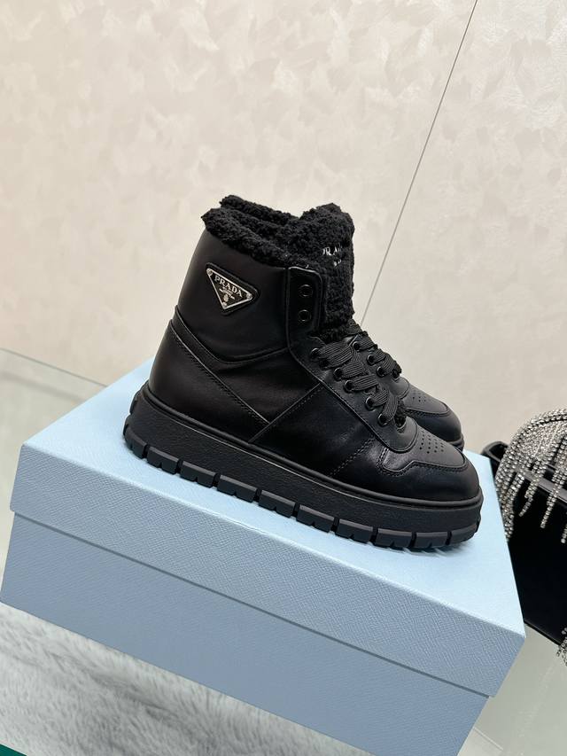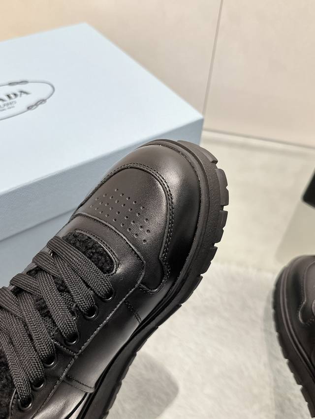 原版购入开发 做货 Downtown Bold运动鞋从1980年代的篮球鞋汲取灵感,运动风设计搭配精致细节。采用穿孔皮革打造,个性的厚底呈现别具一格的现代风格。通过不同角度演绎Prada徽标,饰有标志性的涂珐琅三角形金属徽标,彰显别具一格的经典格调