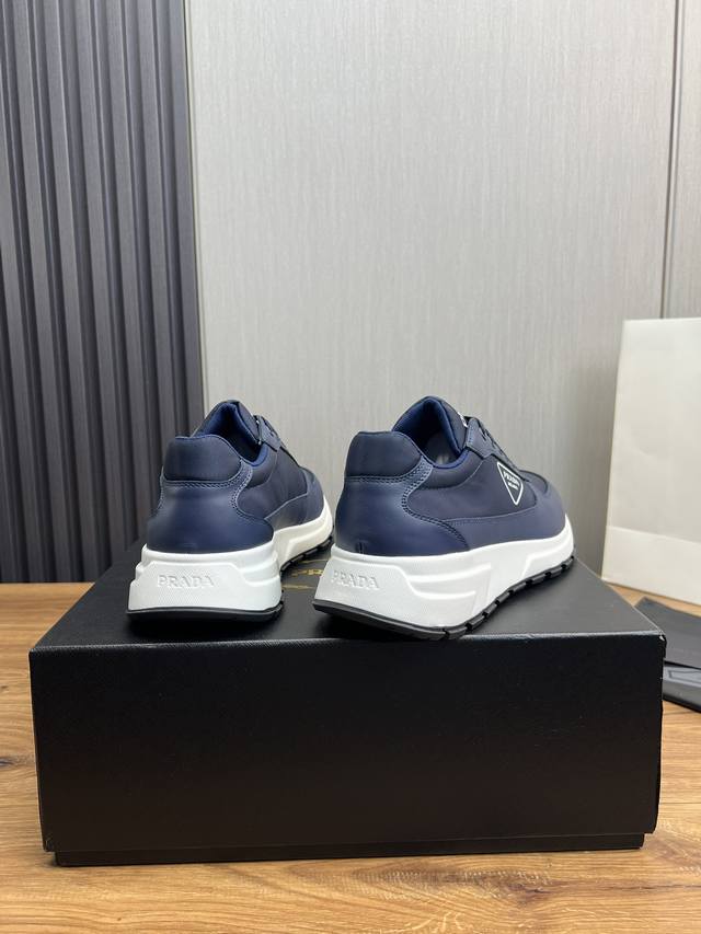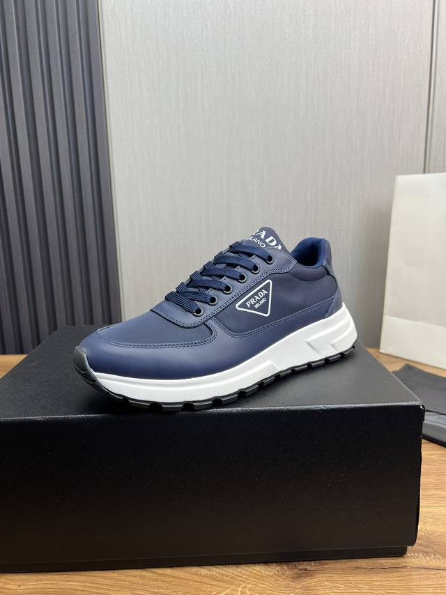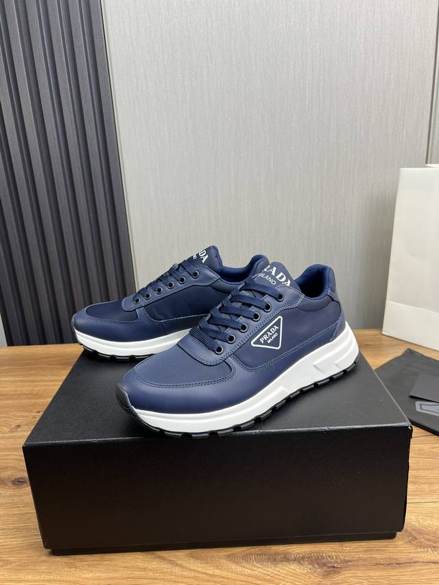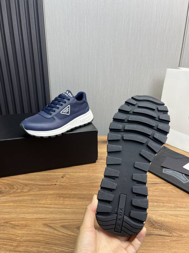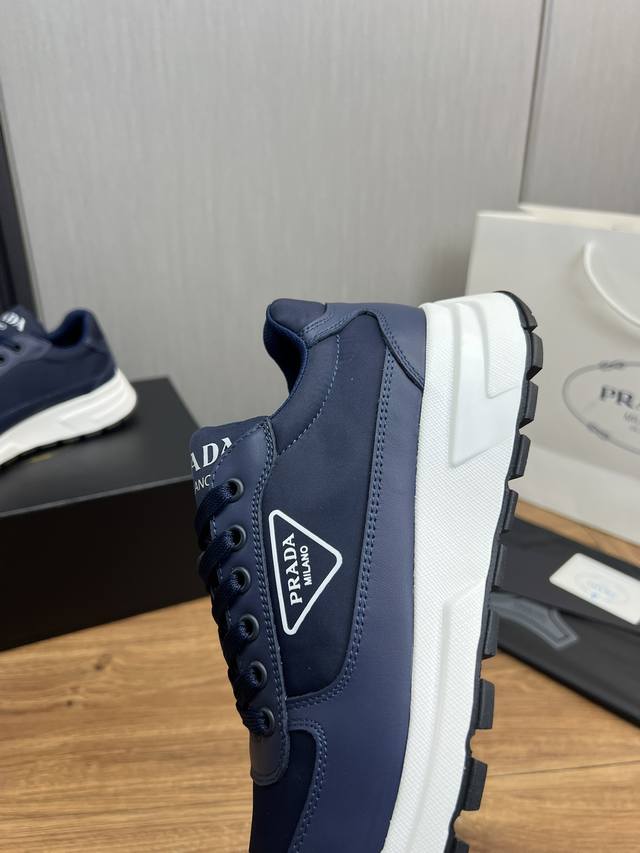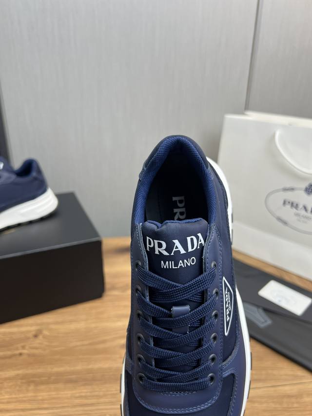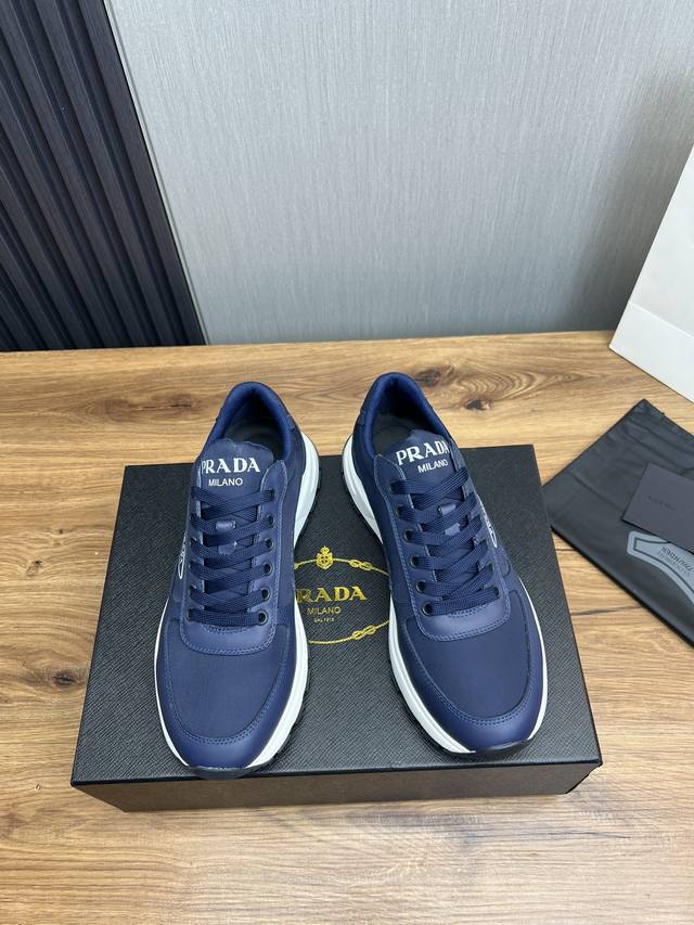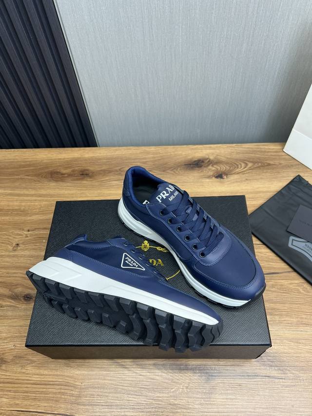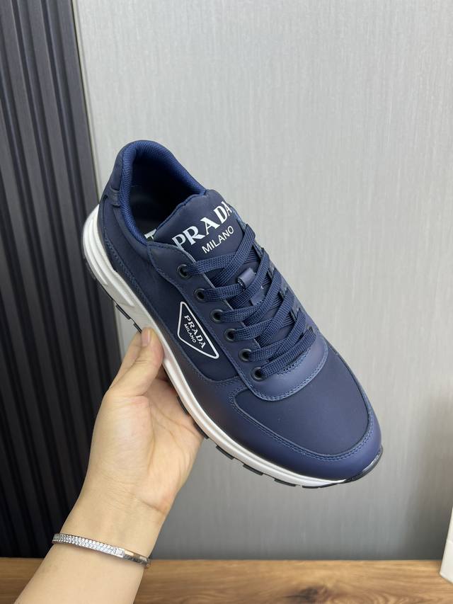 工厂价: PRADA普拉达 男鞋专柜爆款,官网同步,高品质出货原版牛皮拼接网面+牛皮内里,原厂原版底,码数:38-45 45定做不退换