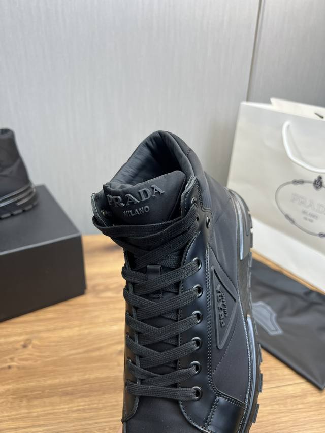 工厂价 Prada普拉达 秋冬爆款热卖 官网同步原版牛皮拼接面料.牛皮内里,1比1复刻 ,原厂原版底,38-45 45.46定做不退换