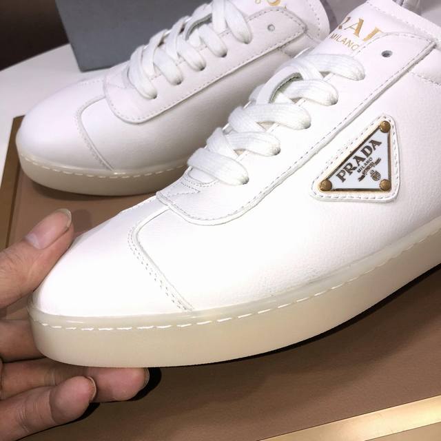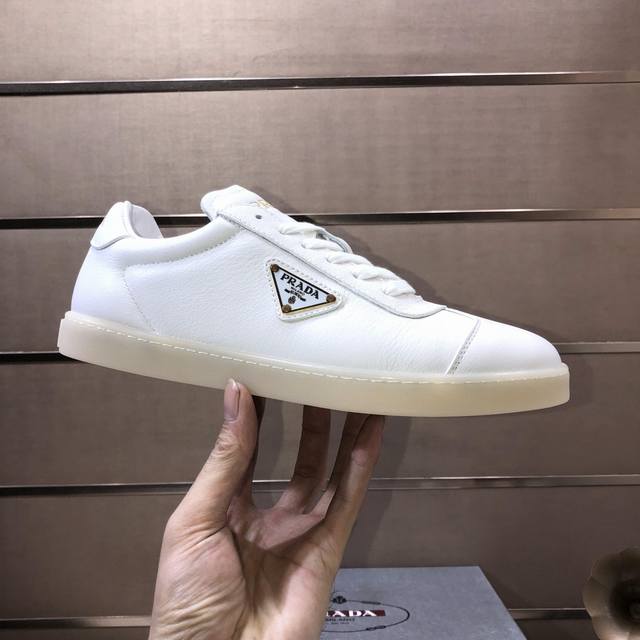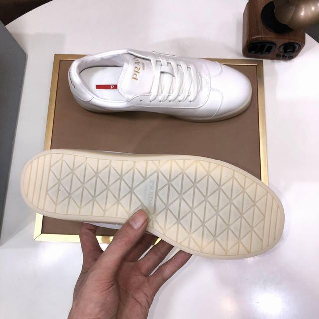出厂价: Prada 普拉达 鞋面:全粒面纳帕小牛皮+品牌帆布布匹、 内里:水染牛皮 大底:超轻tpr橡胶; 成型大底 码数:38-44 45订做