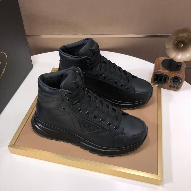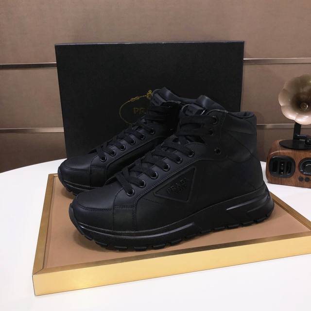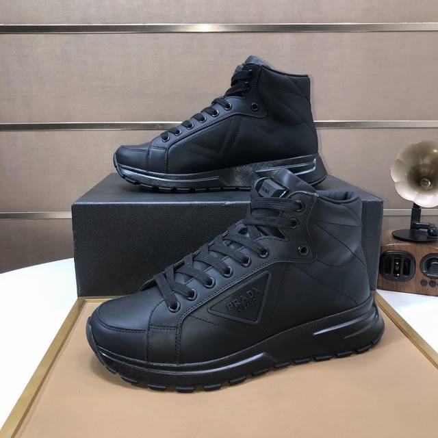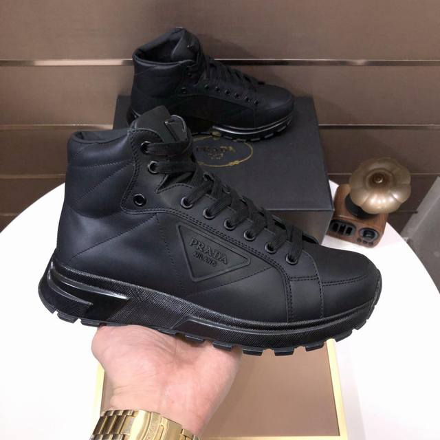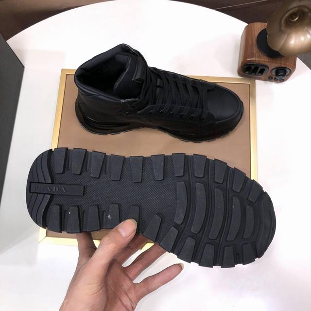 prada 普拉达 高帮运动休闲鞋。 。鞋面采用牛皮,羊皮内里,橡胶大底,脚感舒适,男码38-44,按平时穿着码数选择。