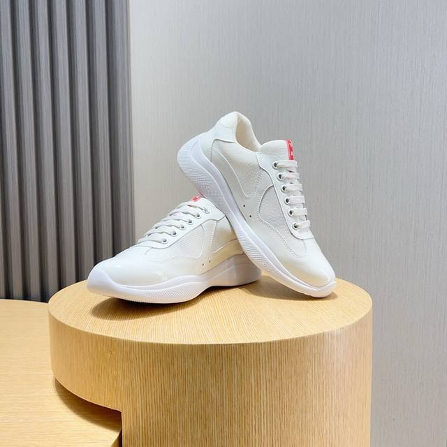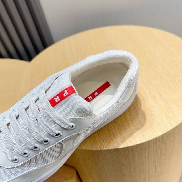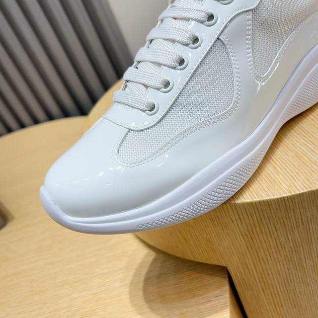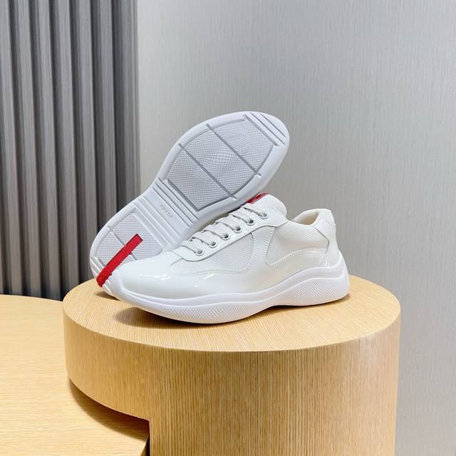 出厂价: 普拉达prada顶级版运动鞋 鞋面进口飞织面料拼接漆皮, 羊皮内里+牛皮踮脚, 耐磨防滑轻便大底, 男女同款:...