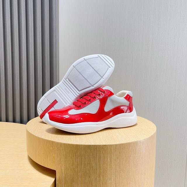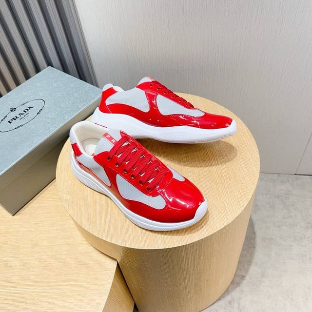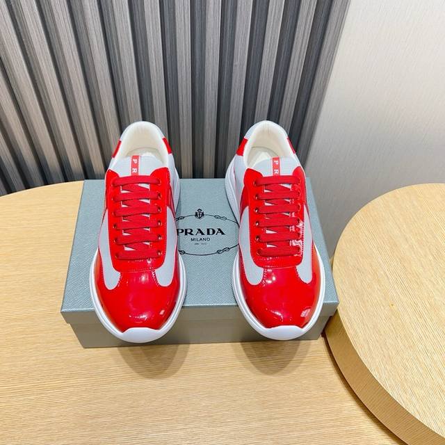p 普拉达*prada 牛里 独家首发 ~独特现代风运动鞋。专柜代购休闲皮鞋 意大利进口原版亮皮 牛里 拒绝脱色磨脚...