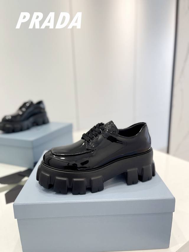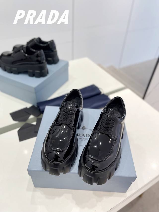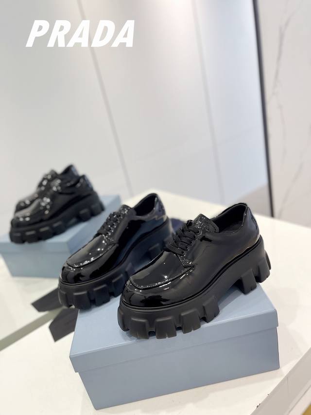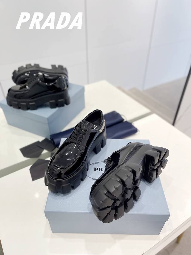 经典的车轮厚底+经典的乐福鞋面prada这款厚底休闲不失误的款好鞋子,1:1还原的鞋子