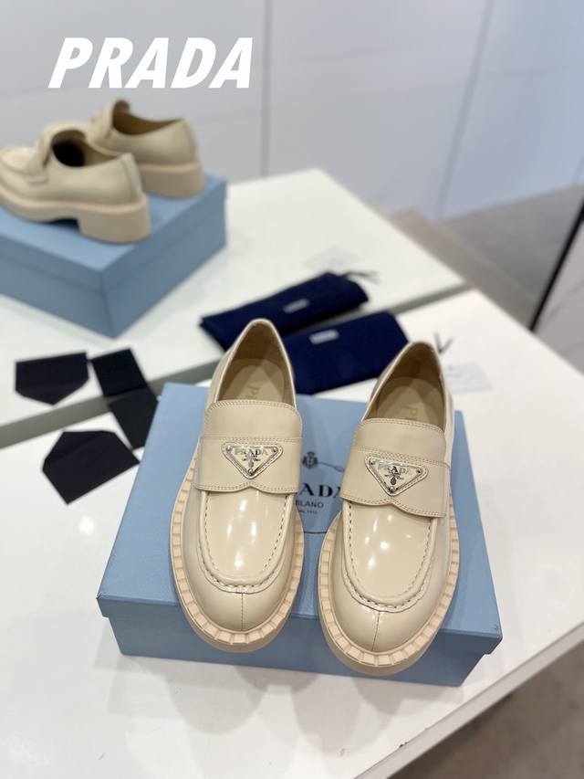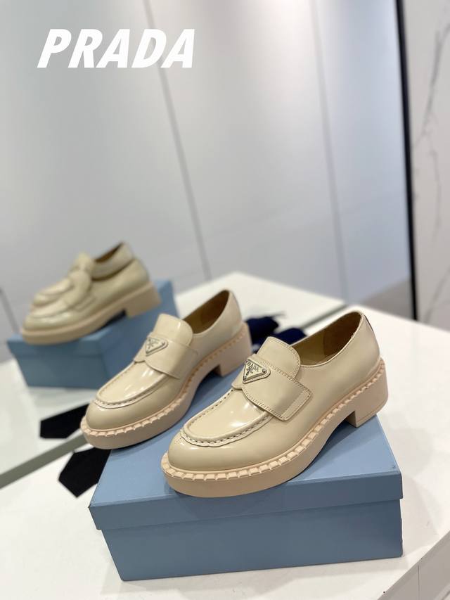工厂p价 顶级版本普拉达 英伦复古设计,经典耐看!原版倒模楦型,极致1:1形体,进口高端面料呈现出精致质感! 鞋面采用原版进口开边珠牛皮 内里垫脚均采用进口水染