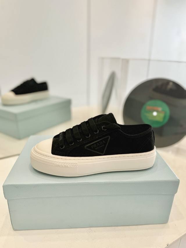 工厂p价 prada普拉达 新款帆布小白鞋