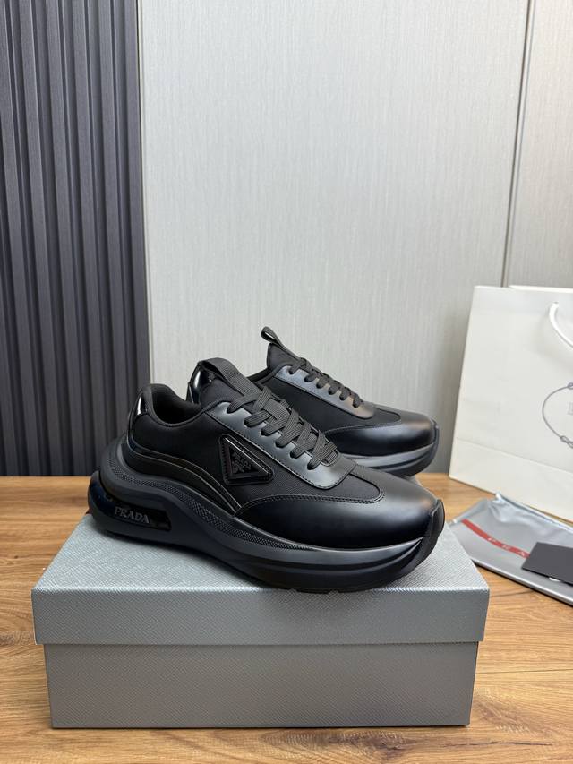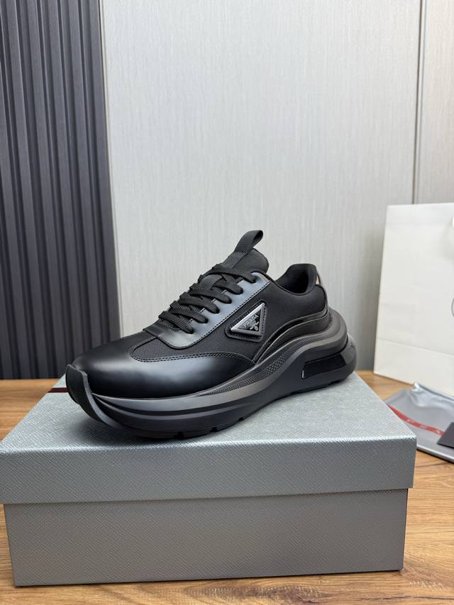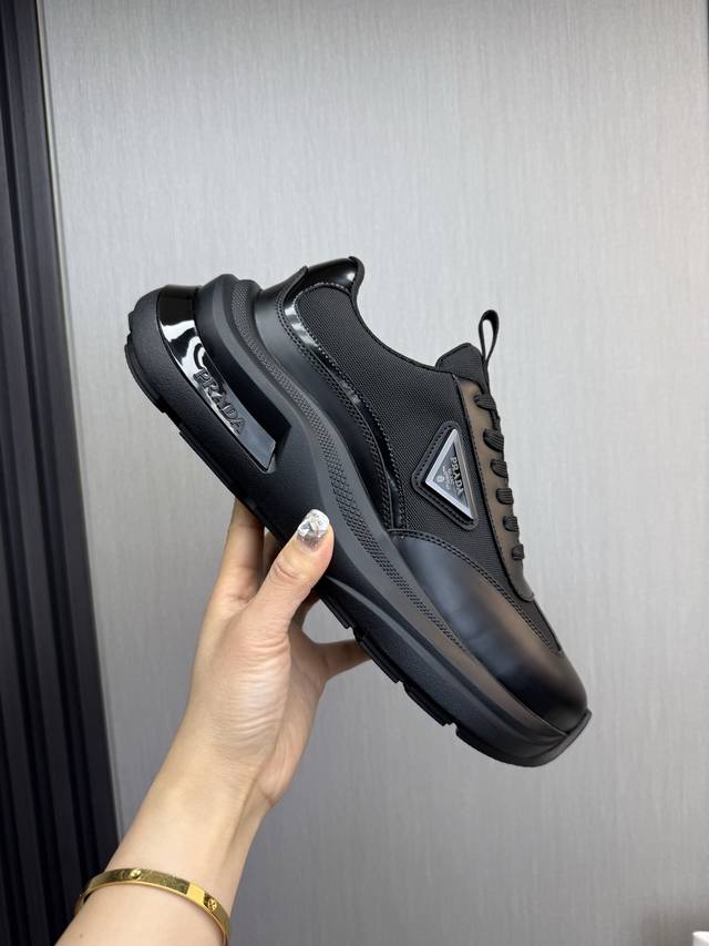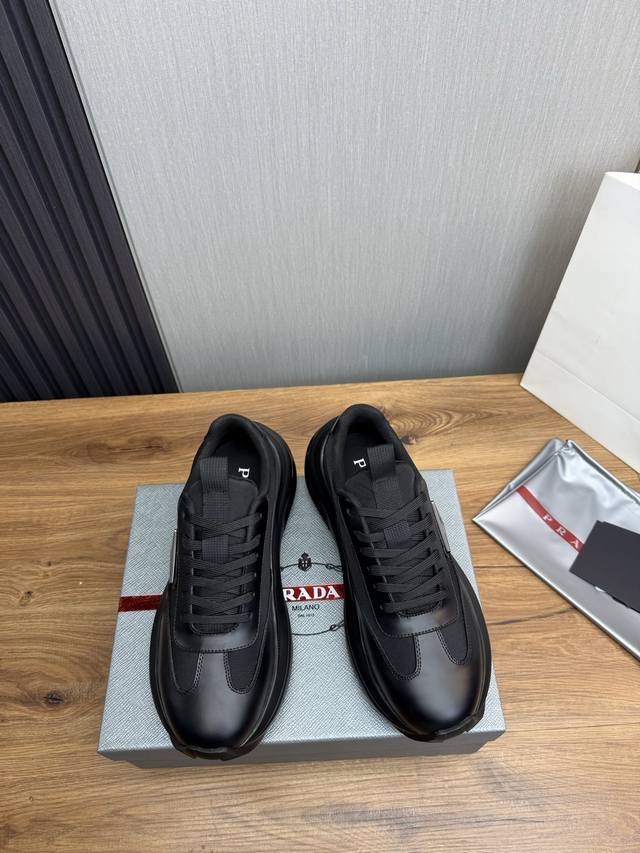 工厂P价 Prada普拉达 男鞋专柜爆款,官网同步,高品质出货原版牛皮拼+牛皮内里,11复刻 ,原厂原版底,38-45 45定做不退换