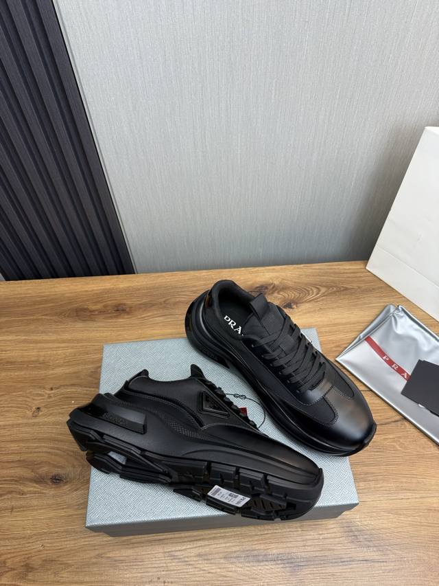 Prada普拉达 男鞋专柜爆款,官网同步,高品质出货原版牛皮拼+牛皮内里,11复刻 ,原厂原版底,38-45 45定做不退换
