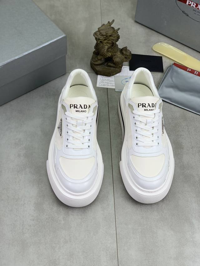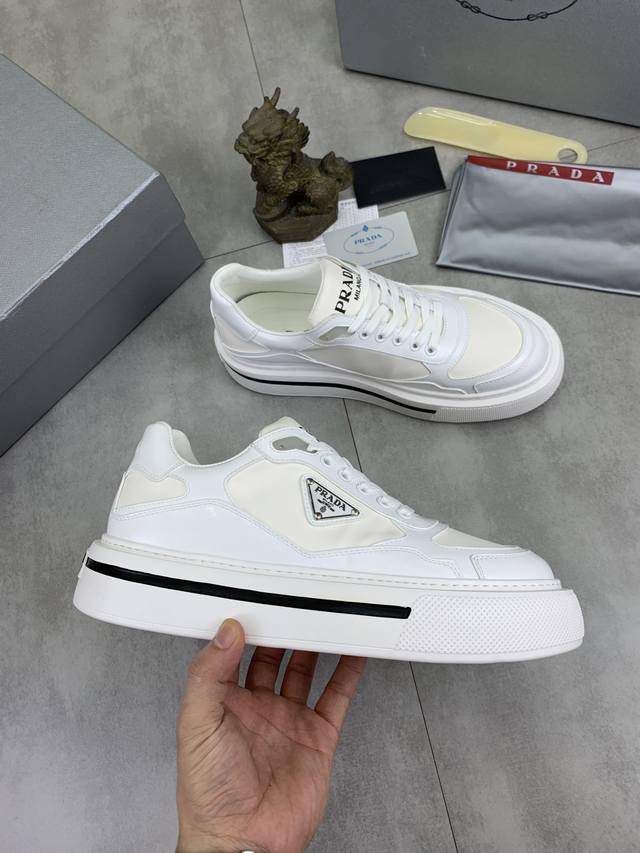 工厂p价p 实价 高版本 官网爆款上市, 潮牌 普拉达prada 主推爆款,前卫百搭时尚男鞋私版开模,牛皮面拼接1:1..时尚干脆、原版进口牛皮内里牛皮垫脚;大