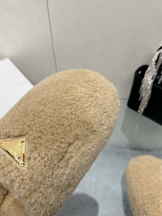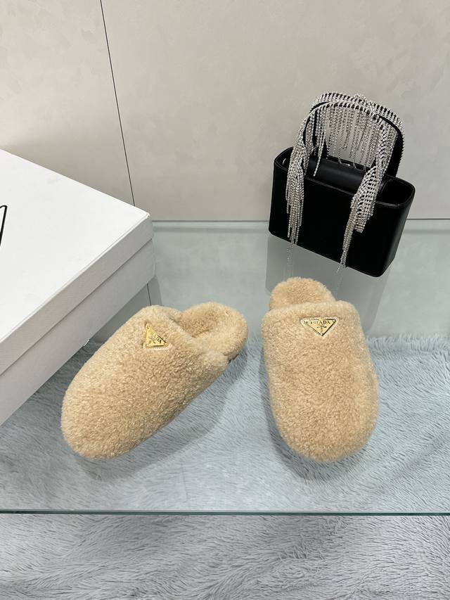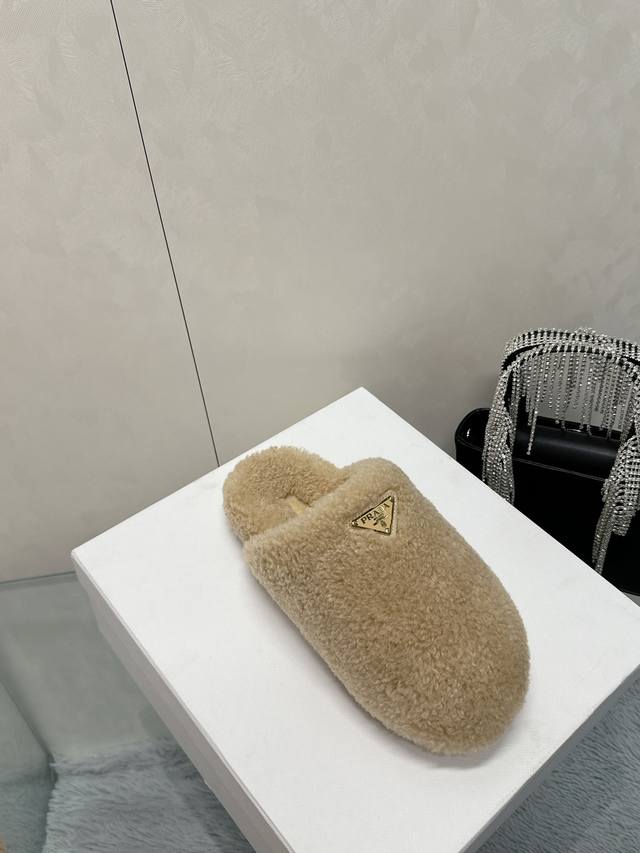 最新系列!prada 普拉达 秋冬季新款毛拖鞋 三角扣面包包头半拖鞋 编织毛系列、最新走秀系列 经典升级 舒适度与时髦度并存 每个颜色搭配都好看,设计搭配不同风格需求