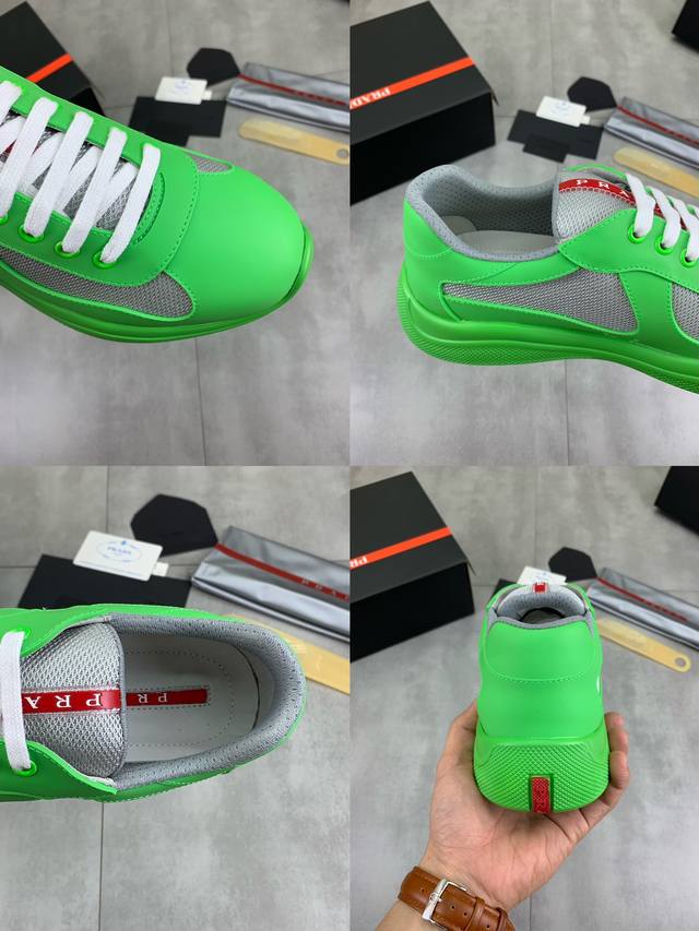 Prada 普拉达 -高端品质 原单休闲运动鞋 -鞋面:纳帕小牛皮、鞋身品牌金属扣件、鞋舌后跟空压品牌Logo -内里:水染牛皮...