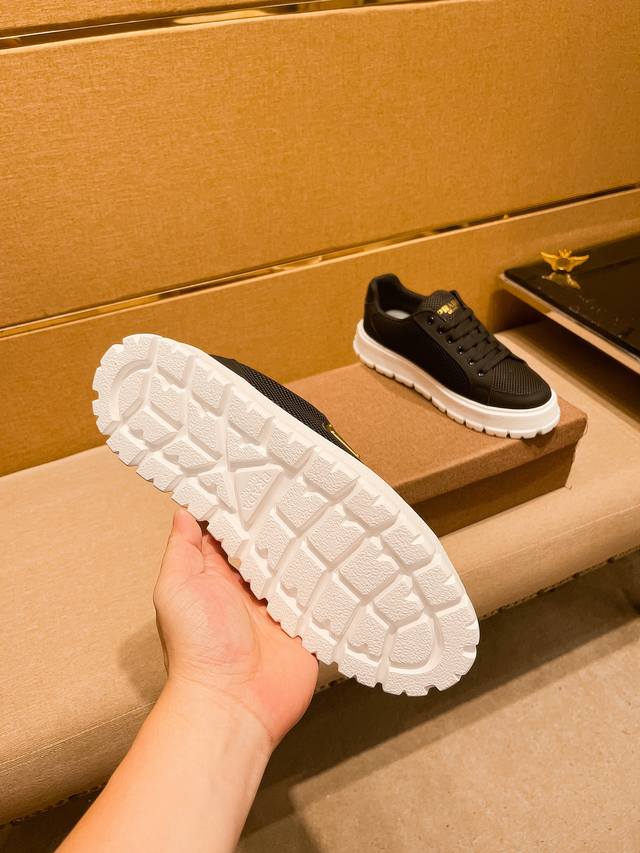 工厂p批 普拉达 男鞋高端品牌 官网1:1最新力作:鞋面采用意大利进口丝光面料搭配舒适透气内里原版防滑耐磨大底制作,让行走更加便捷舒适!独家新款,惊世之作,与官方的质量相比美的1:1复刻 !打造时尚个性衬托你的与众不同!潮男必备38-44 颜色: 1色可选