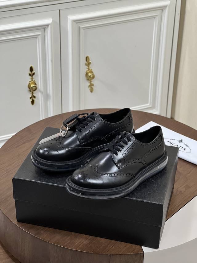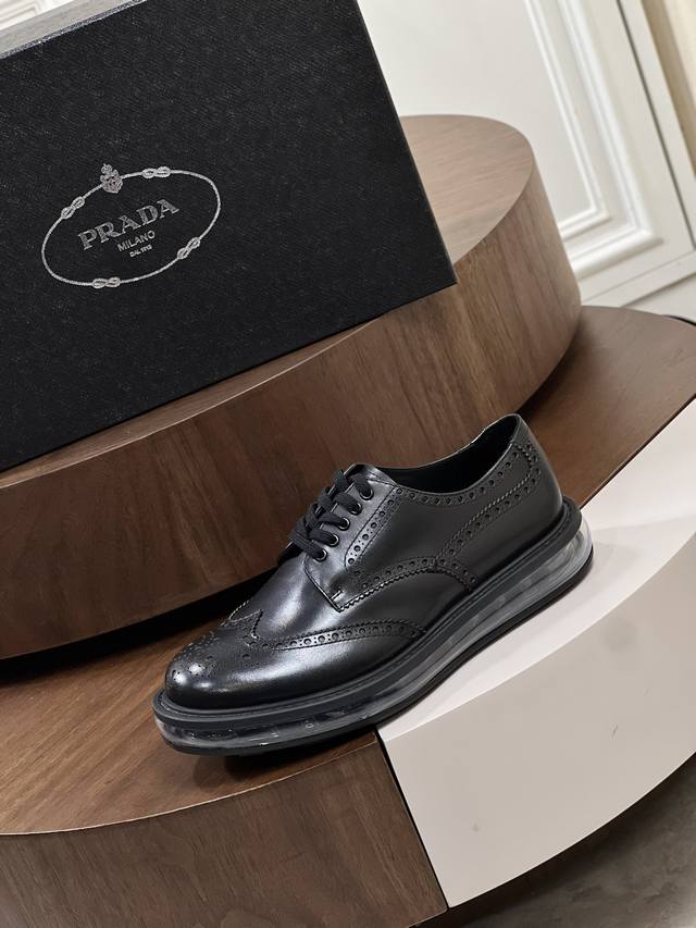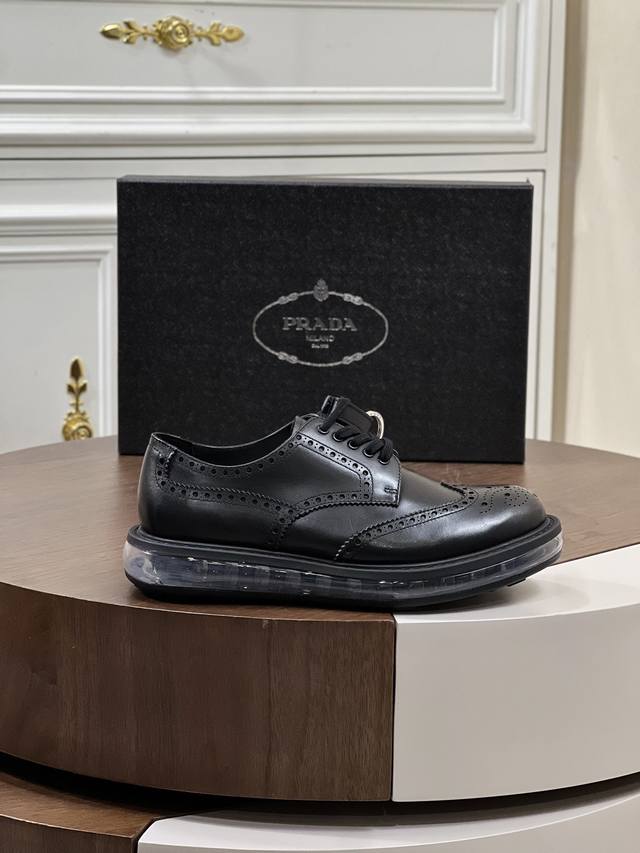 新品 Prad*_高端男生气垫休闲动鞋。 进口头层牛皮打造,水染牛皮内里,原版气垫减震耐磨橡胶底,脚感舒适,高端大气! Size:39-44