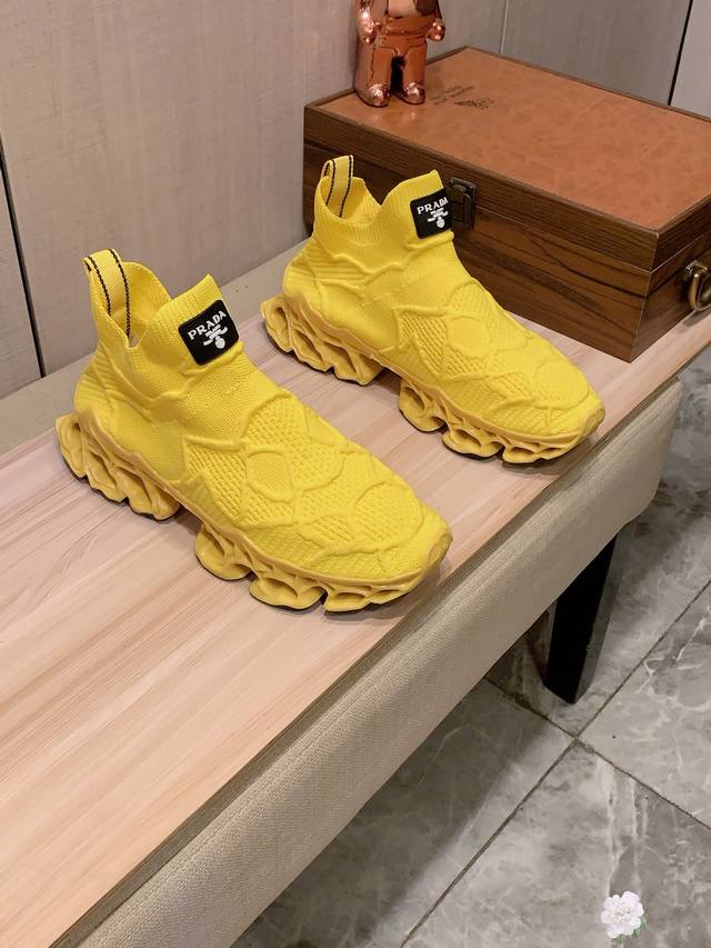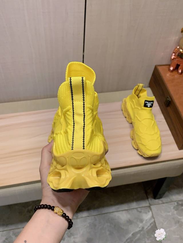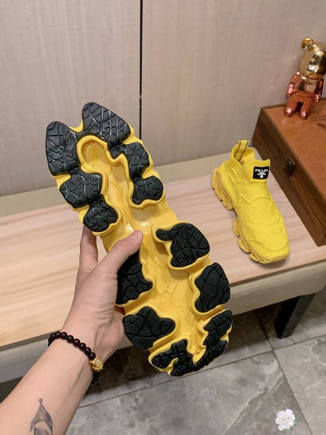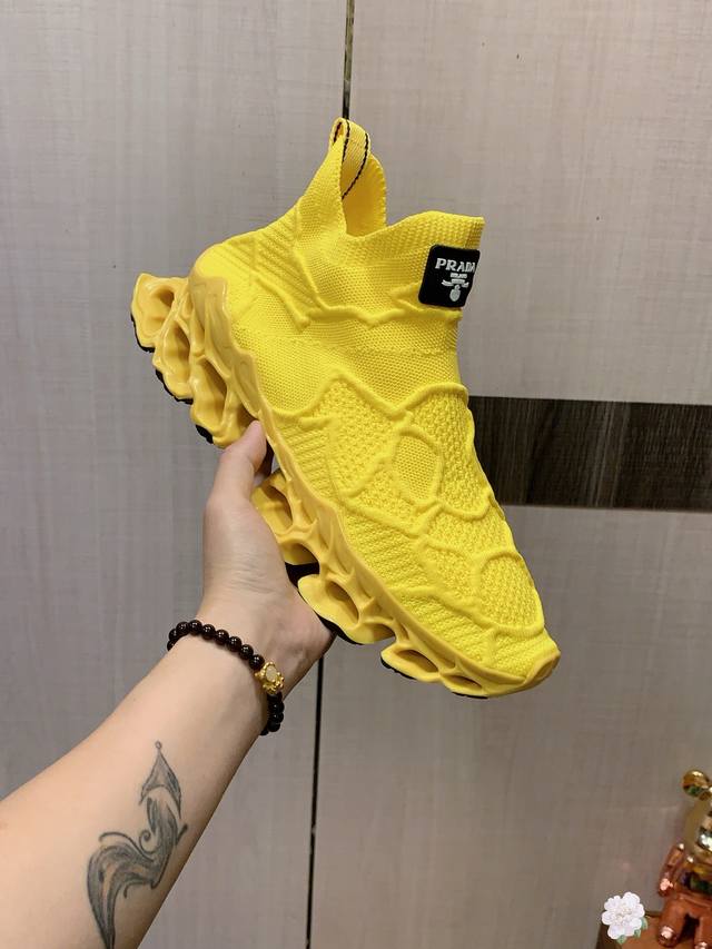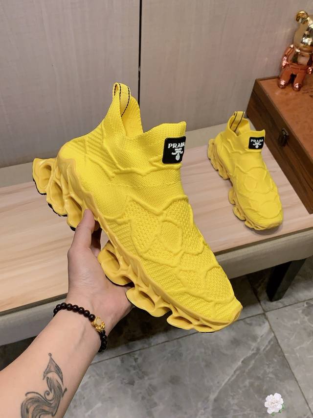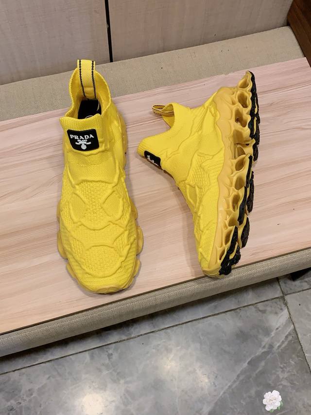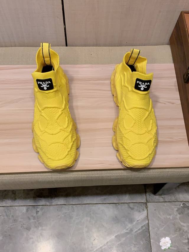 新款: 厂价 普拉达Prada* 最新爆款休闲鞋,顶端品牌 奢侈~代购,顶级~质量。 鞋面選用进口透气飞织搭配材质透气羊皮垫脚 精细做工。原版个性时尚柔软橡膠耐