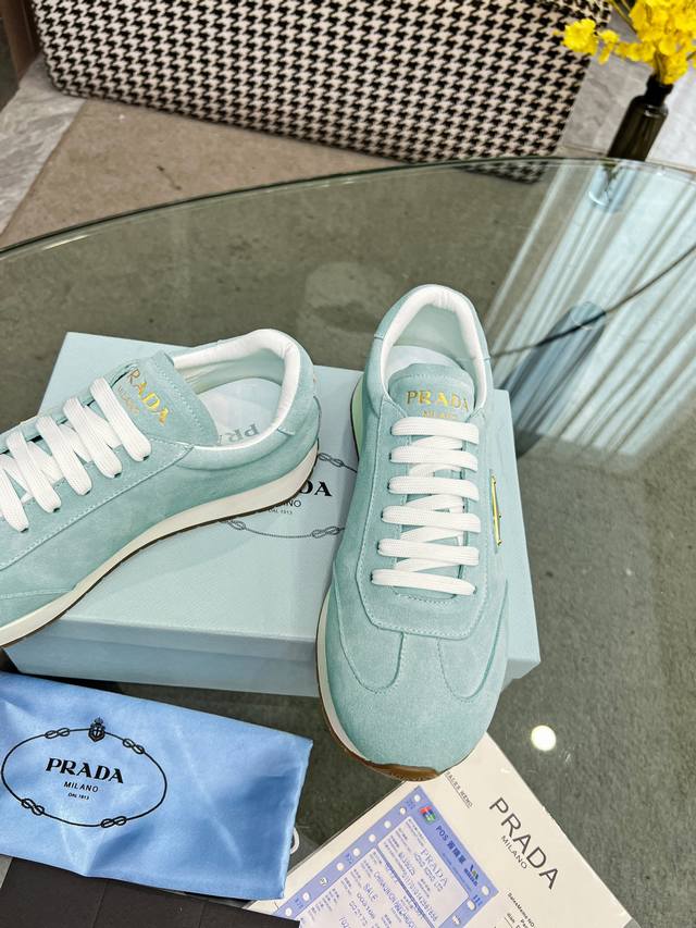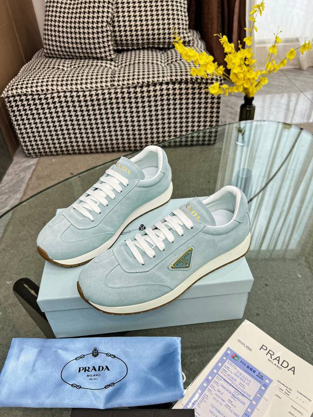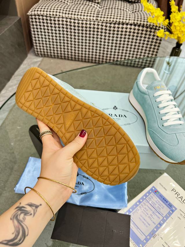 普拉达prada 新款专柜同步发售,鞋面牛绒,水染牛皮内里,原版橡胶大底,完美细节无可挑剔,标准码38–44 45订做