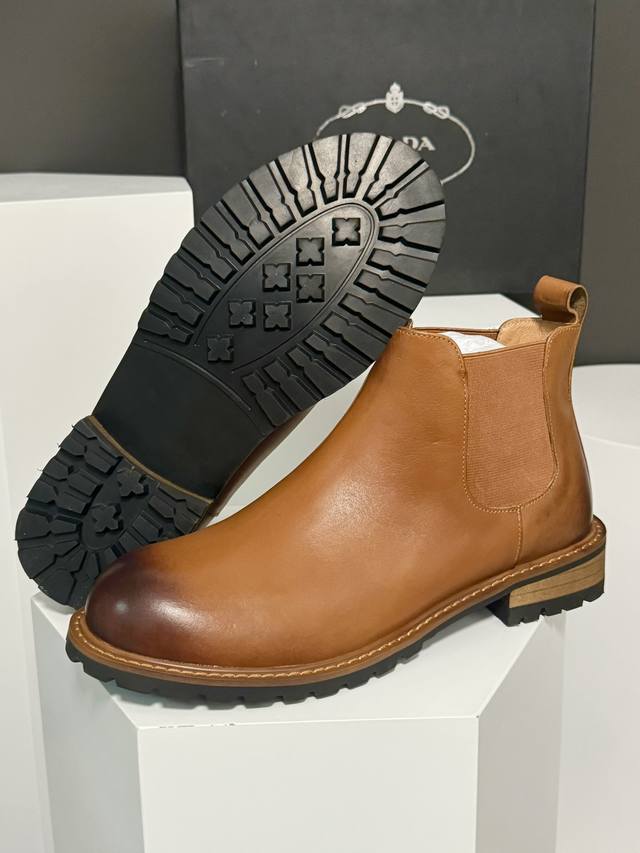 普拉达新品马丁靴加拿大进口全头层牛皮+皮里!高端大气上档次,穿着百搭,立体感十足,38-44 45定做 多色选!