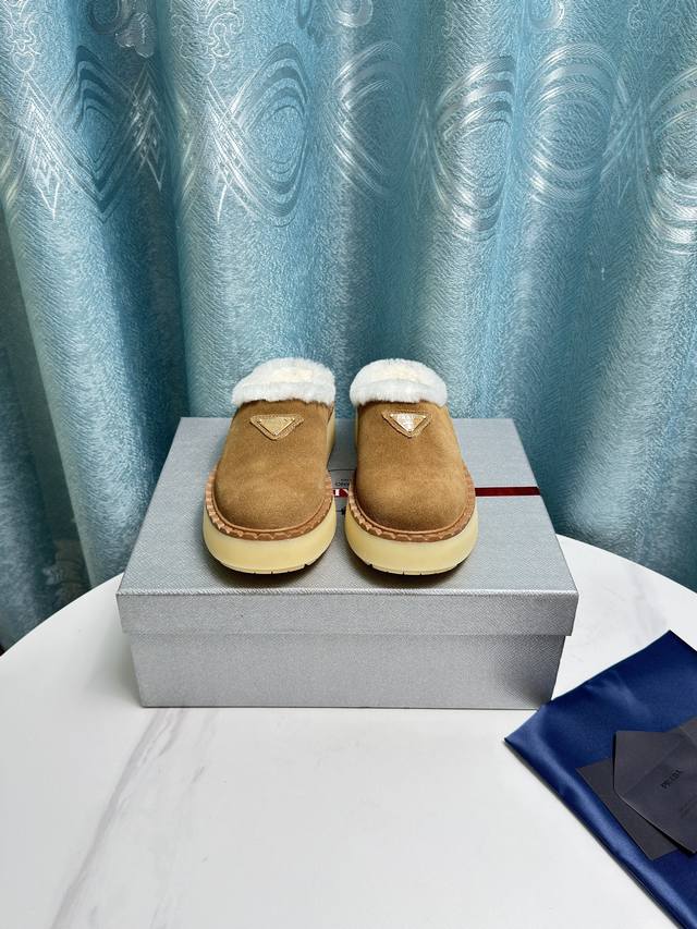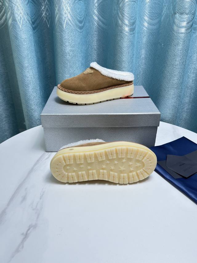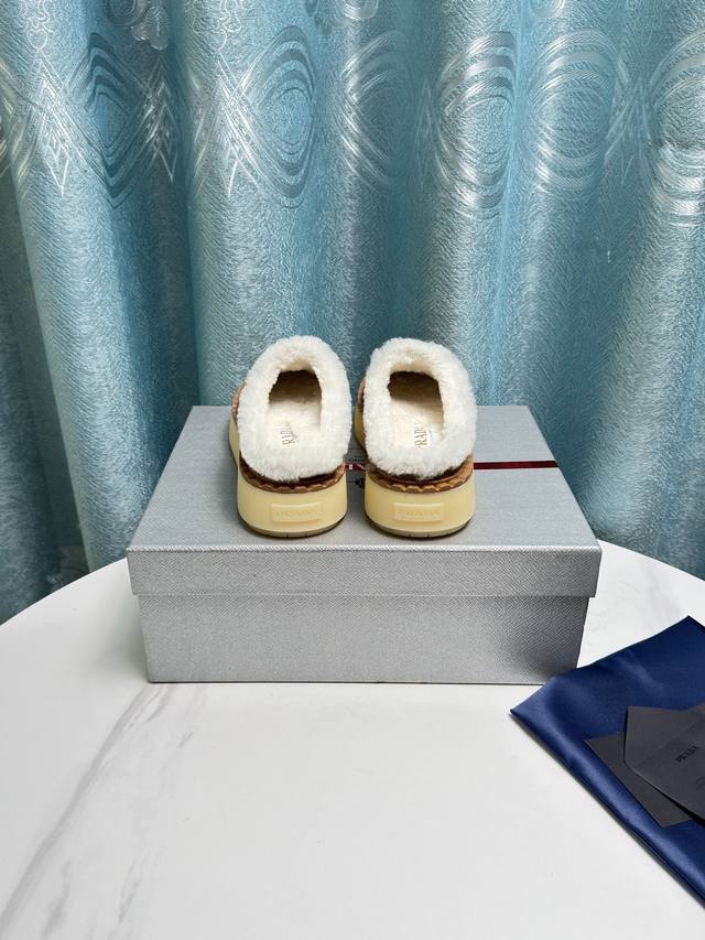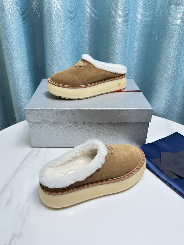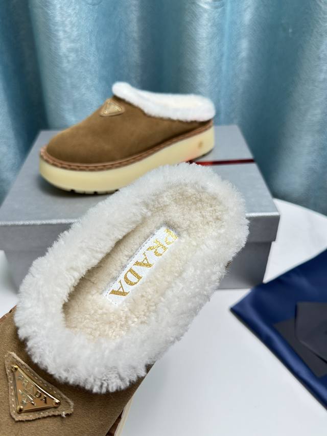 普拉达秋冬新款厚底半拖高帮毛鞋 : 面料:进口羊毛一体, 羊毛内里带logo 原版:防滑大底高度4CM 码数:35-41 41订做