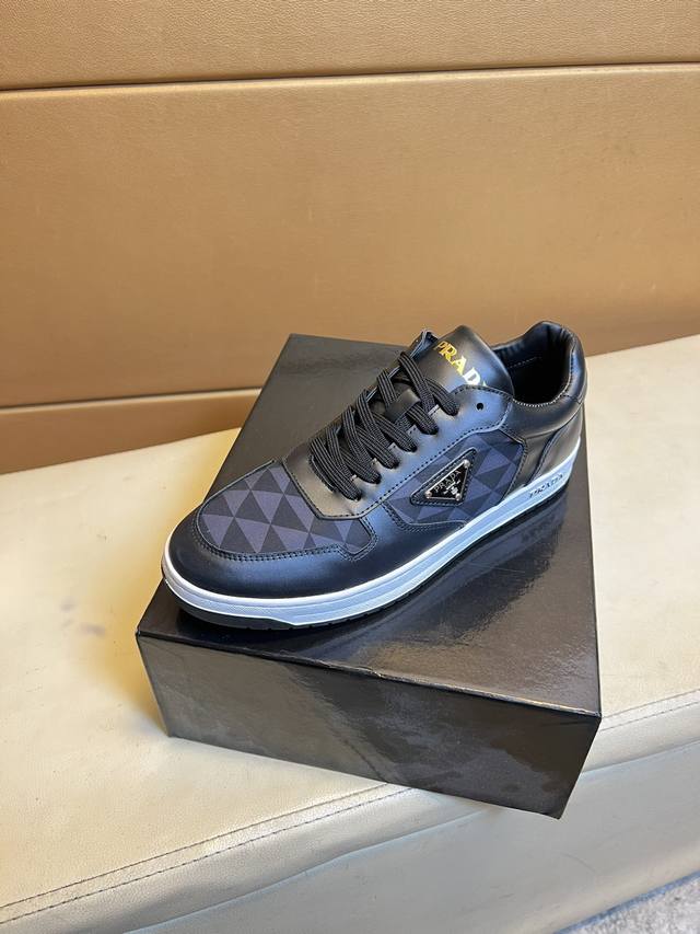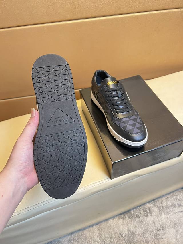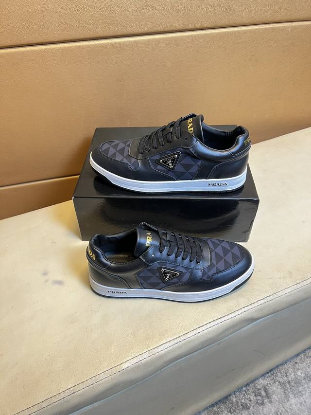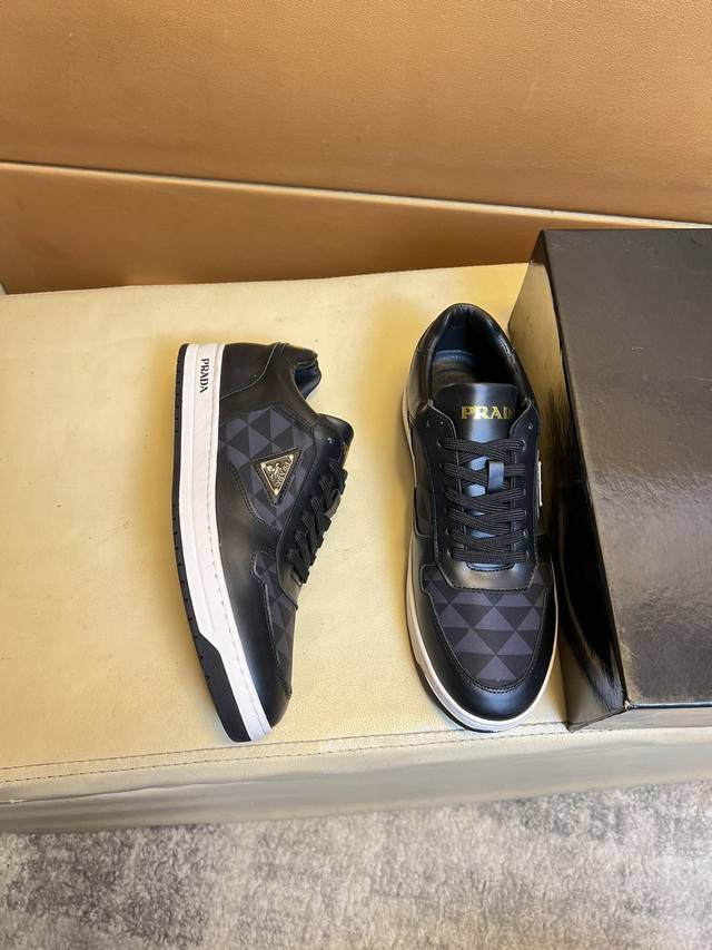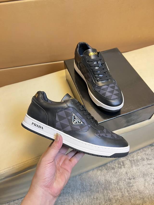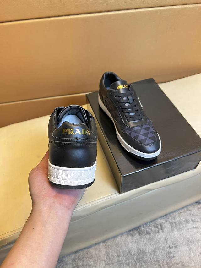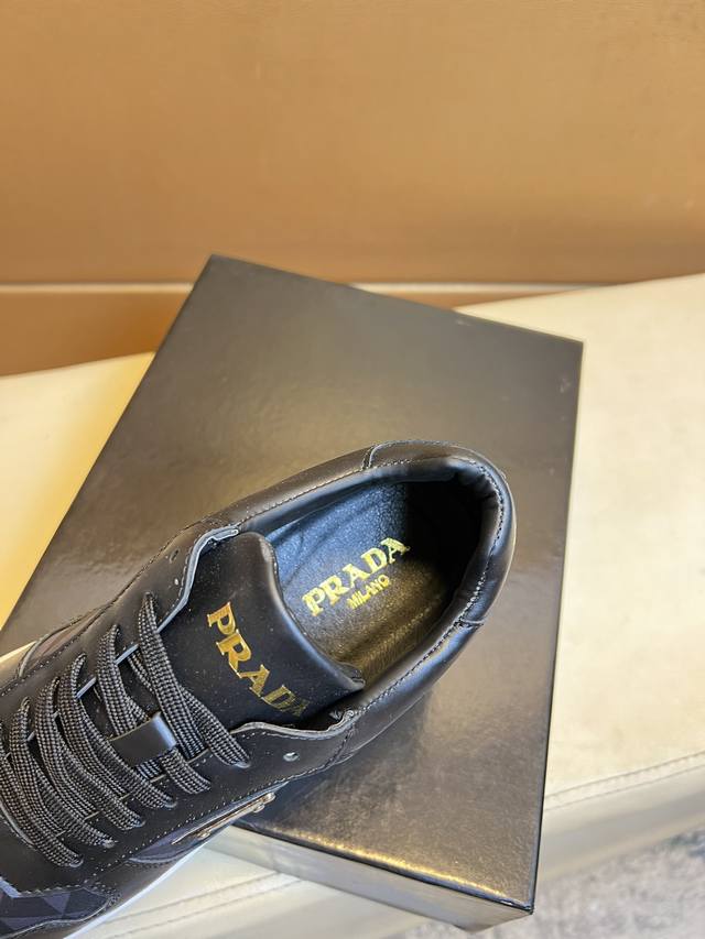 出厂价: 普拉达 休闲板鞋 官网同步新款 进口打蜡牛皮牛皮内里制作原版中底 私家定制滴胶发泡大底大底组合 38-44M