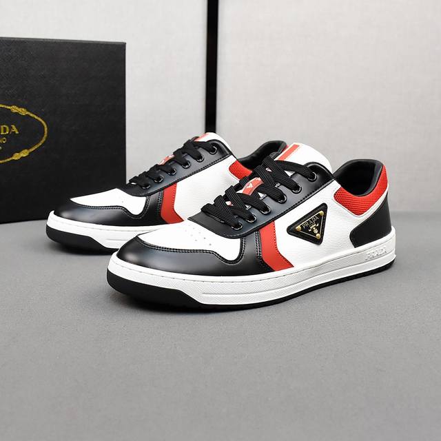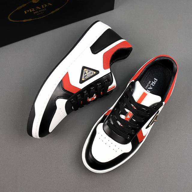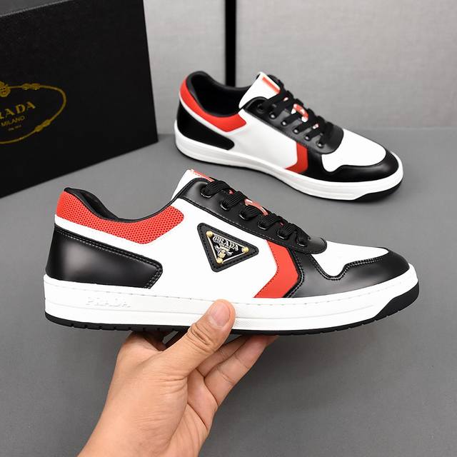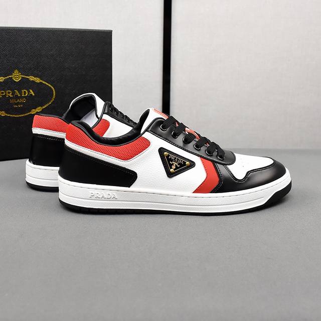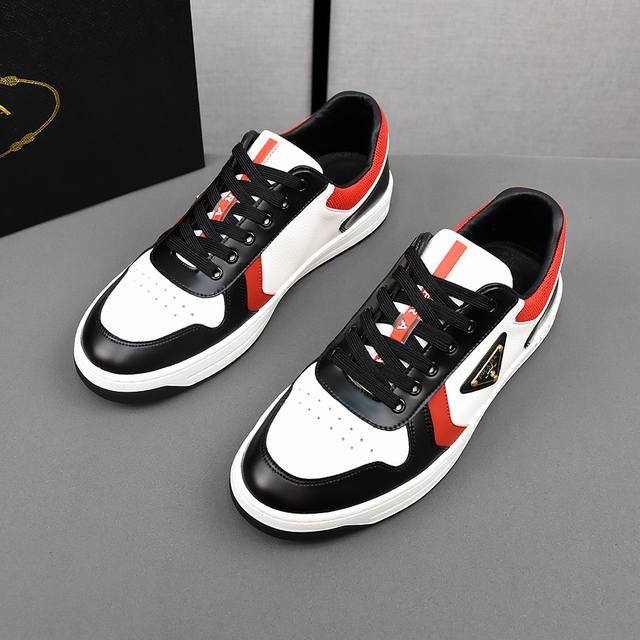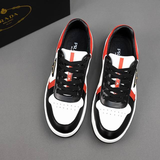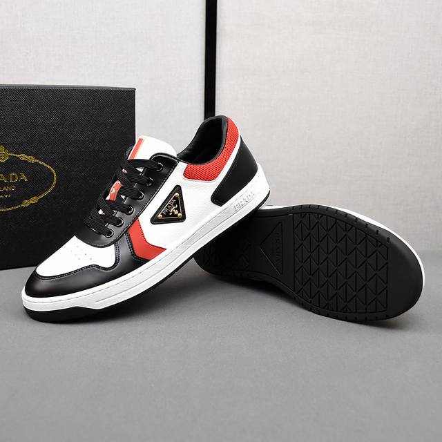 普拉达 PRADA 。引爆全场!不断创新的国际品牌 此款男士休闲鞋,原版版本,专柜一比一牛皮材质,皮垫脚橡胶防滑大底,透气舒适以质量说话38-44