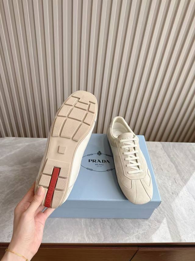 男10 顶级版本 25Ss新款Prada,情侣休闲鞋,原版1比1开发,面料高丝光牛猄配进口牛皮,内里丝绸羊皮,大底橡胶,上脚舒适柔软 码数:女码35-41 41