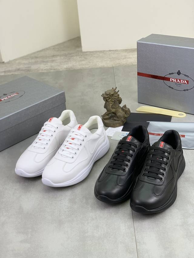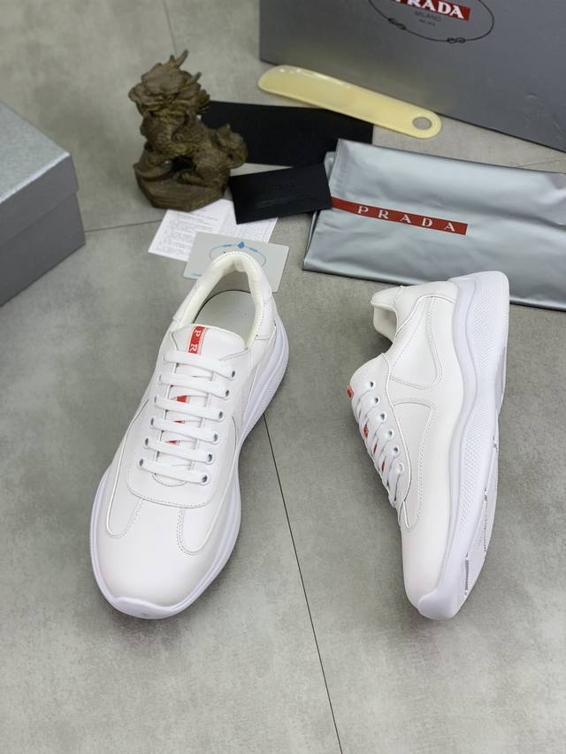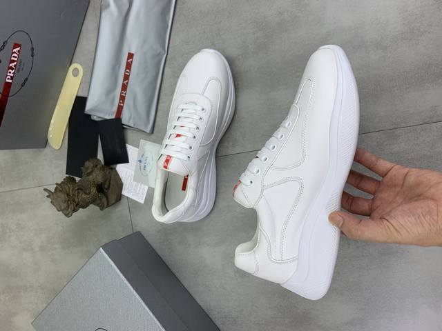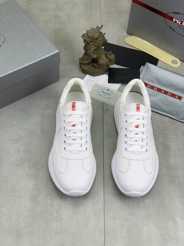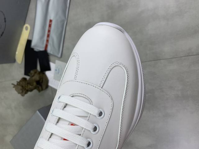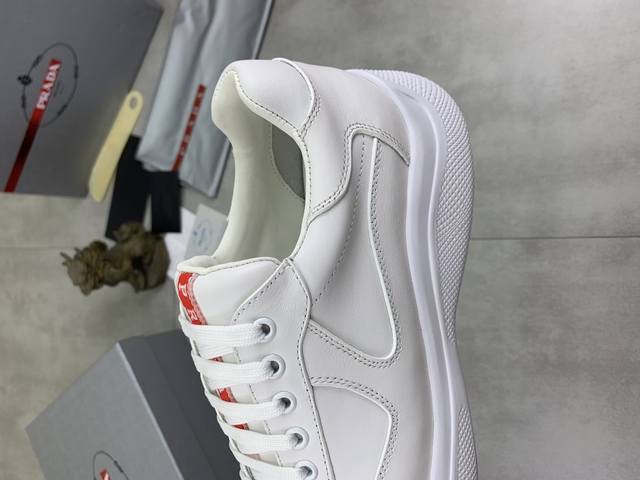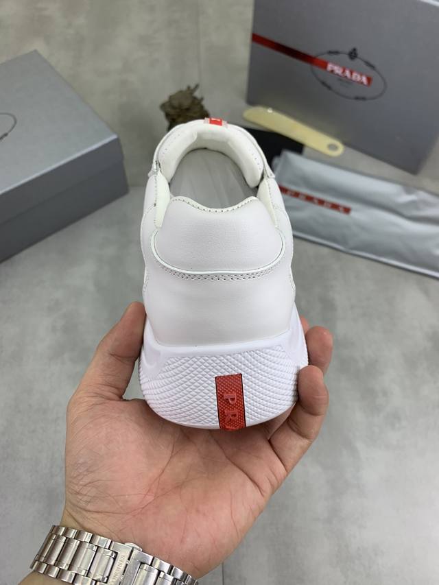 prad*普拉达2024春夏新品男士高端运动鞋,这款运动鞋时尚百搭,简洁现代,融合运动风格和精致细节。选用皮革材质打造,搭配...