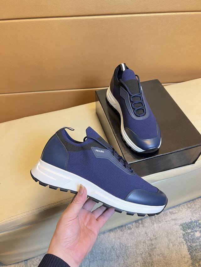 高品质牛里 PRADA普拉达 香港代购男鞋官网最新款上市了1:1复制,香港专柜同步,走秀同台;全部采用透气飞织进口透气面料配牛皮内里、原版1:1防滑耐磨;着脚舒适、款式耐看,做工精细,配以简洁利落的鞋楦,彰显男人的果敢和硬朗, 码数38一45