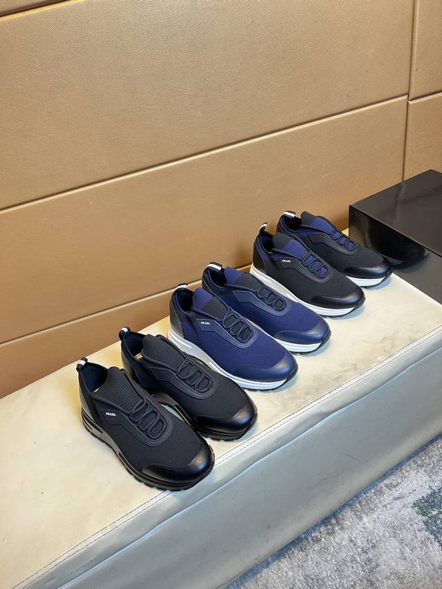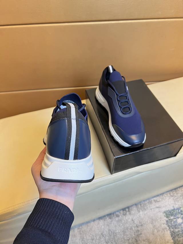 / 高品质牛里 PRADA普拉达 香港代购男鞋官网最新款上市了1:1复制,香港专柜同步,走秀同台;全部采用透气飞织进口透气面料配牛皮内里、原版1:1防滑耐磨;着脚舒