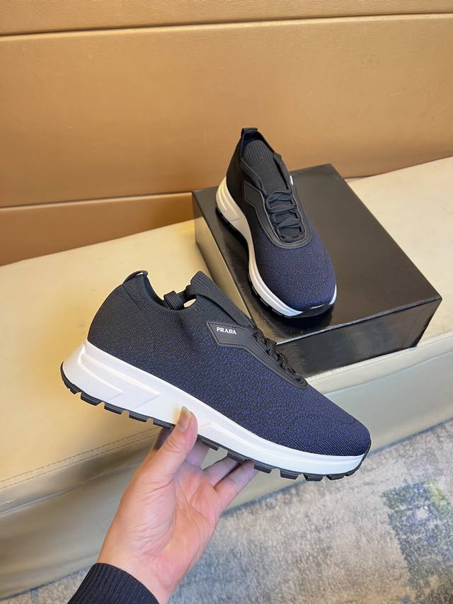 / 高品质牛里 PRADA普拉达 香港代购男鞋官网最新款上市了1:1复制,香港专柜同步,走秀同台;全部采用透气飞织进口透气面料配牛皮内里、原版1:1防滑耐磨;着脚舒