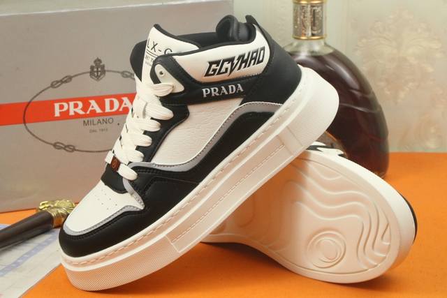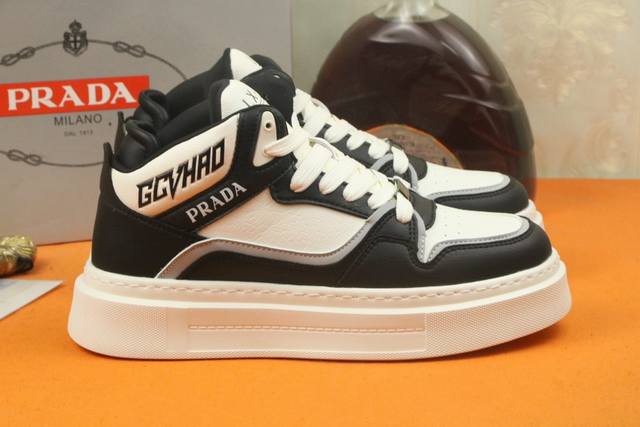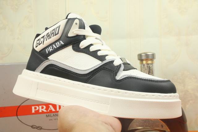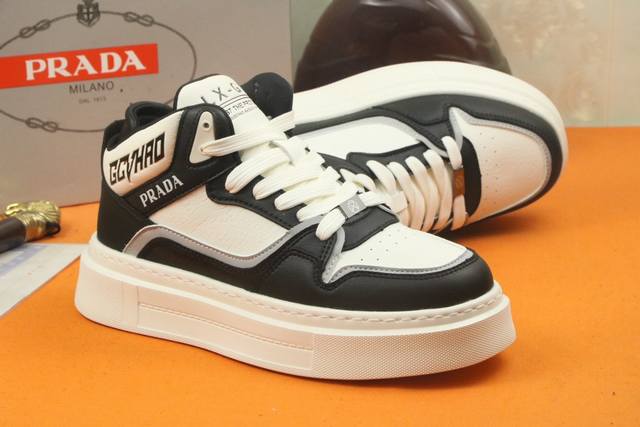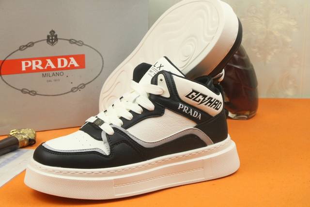 / 高品质 PRADA 普拉达新款上市著名奢侈品牌,专柜同步更新,意大利男鞋时尚杂志季刊封面主推款!鞋面采用意大利进口牛皮制作,透气网布内里。原版防滑轻质发泡运动大