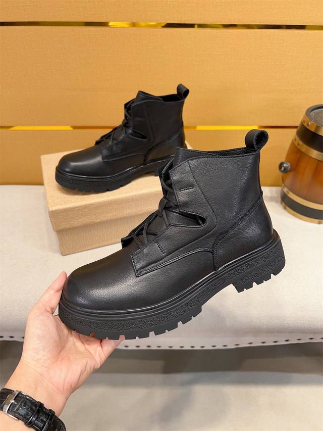 高版本 普拉达-超火的冬季高帮鞋一款系列版休闲马丁靴爆款 鞋面用上好牛皮羊皮里,配搭嵌入全牌绑带更显大方经典休闲 舒适百搭脚感超透气不失时尚风,原版tpr大底 整体的效果将时髦运动风与现代设计感融会贯通 实物更靓 码数:38–44,黑色 A40,000
