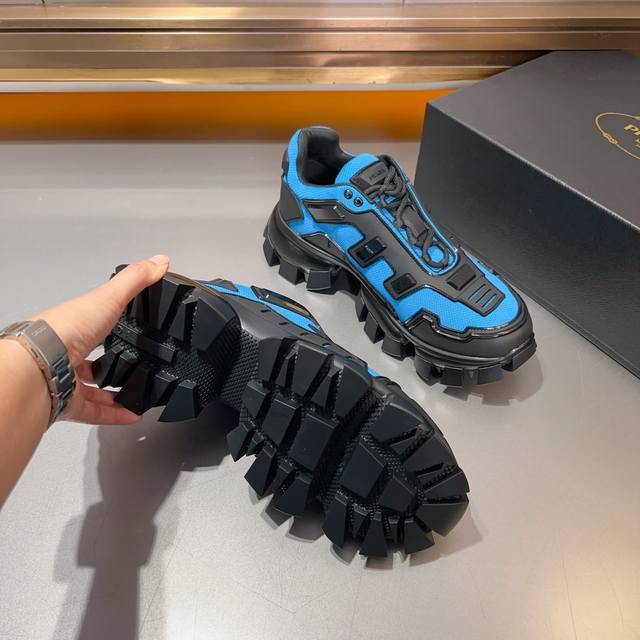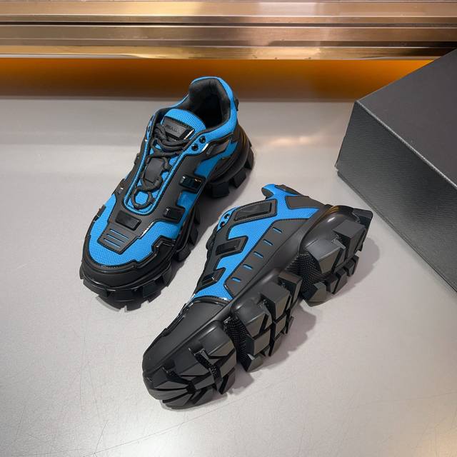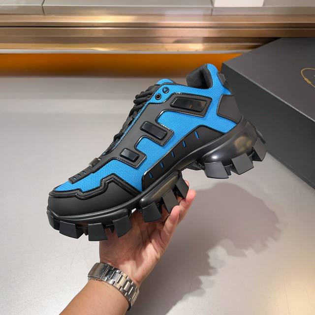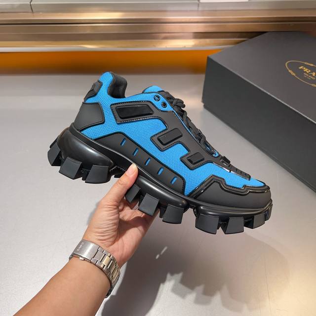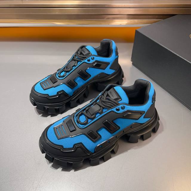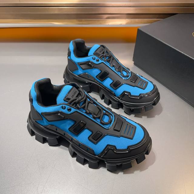普拉达PRADA顶级版男款运动鞋 鞋面进口飞织面料拼接牛皮, 羊皮内里+牛皮踮脚, 耐磨防滑轻便大底, 码数:38-45码,