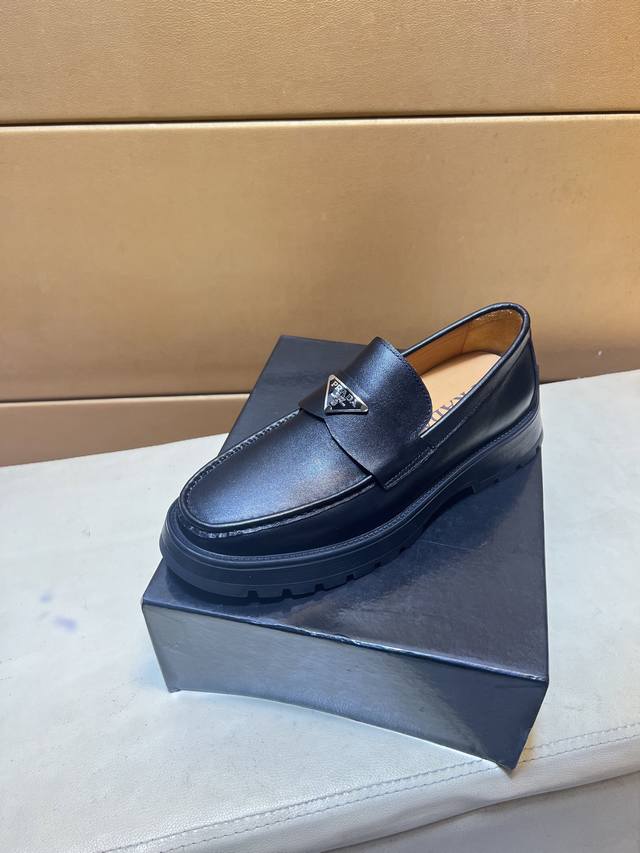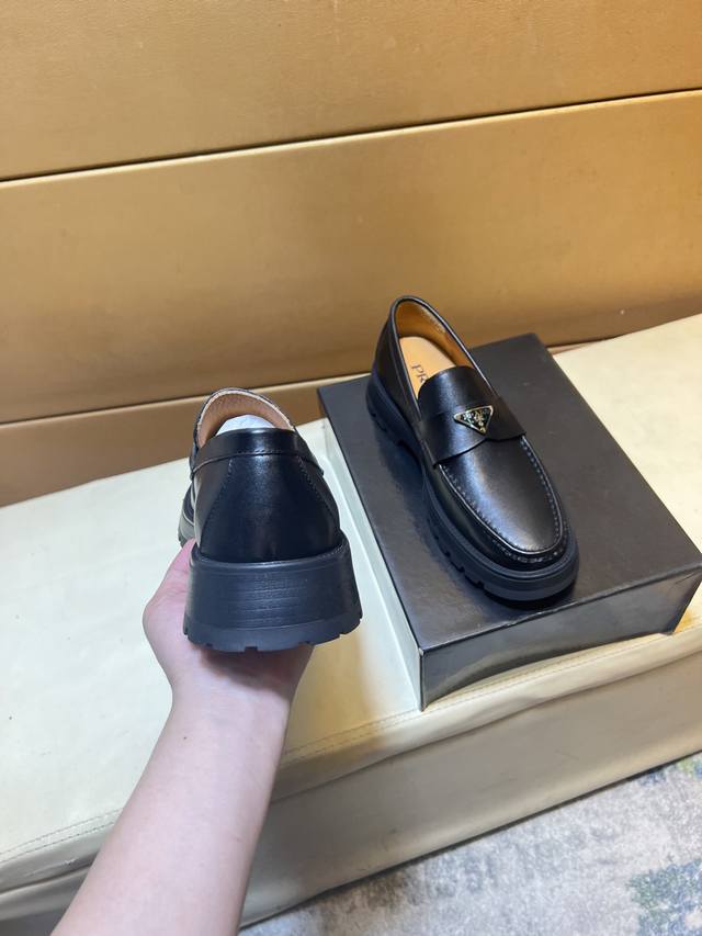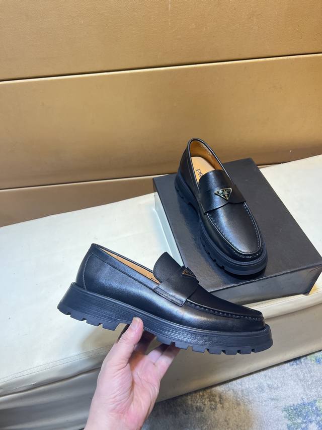 prada 普拉达 -高端品质 原单 -鞋面:原版纳帕小牛皮、鞋身车缝品牌塑胶logo -内里:水染牛皮 -大底:原版tpu橡胶发泡;成型大底...