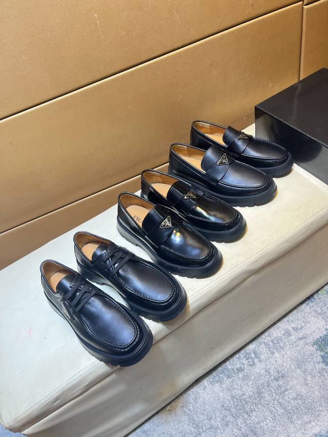 p 普拉达*prada 牛里 独家首发 ~独特现代风运动鞋。专柜代购休闲皮鞋 意大利进口原版亮皮 牛里 拒绝脱色磨脚 鞋底:原厂特供原版底,超酷 系带走路都带风风格设计 超舒服耐磨防滑原版底 。就好像实物拍摄实物更赞 适合户外,驾车完美高品质板鞋,男鞋码数:38-44