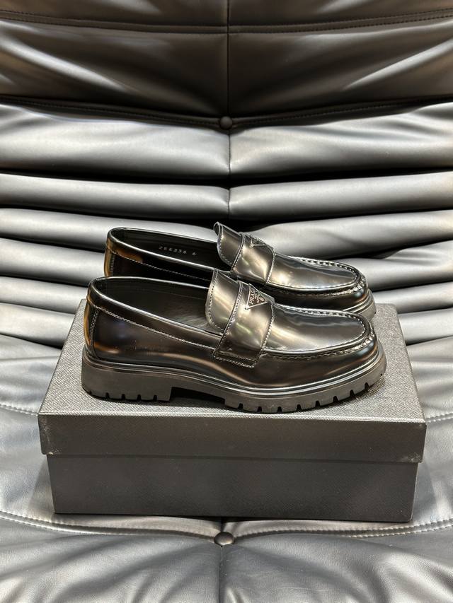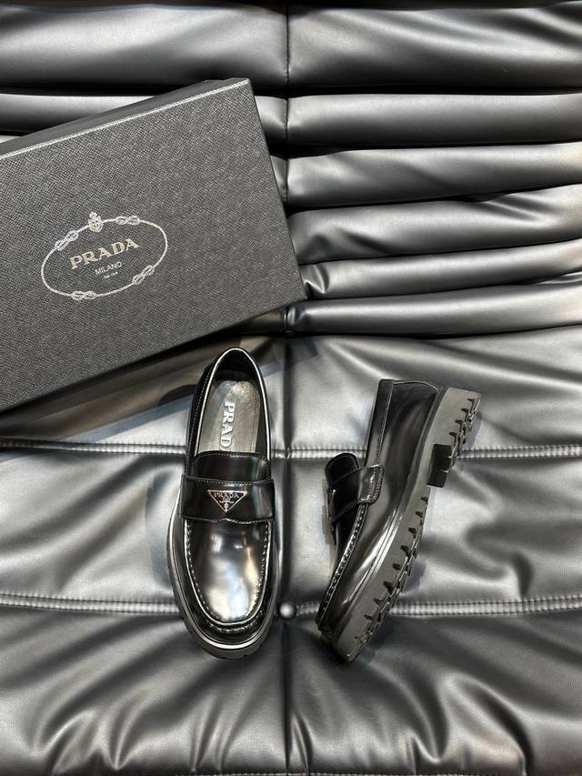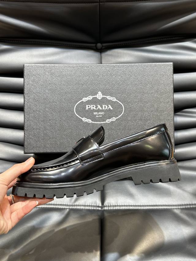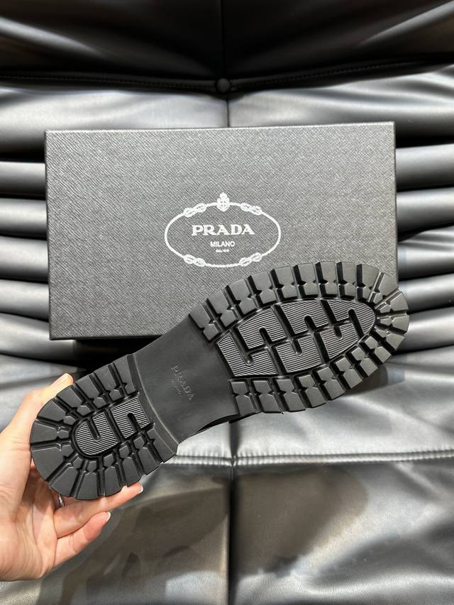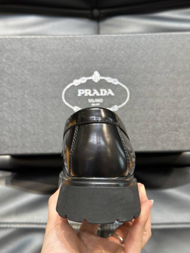Prad*厚底正装休闲皮鞋,经典系列,德比鞋型优雅大气 高品质精品 牛皮垫脚 内里小牛皮 加厚橡胶材质底 经久耐磨 超轻大底 上脚舒适度极高!