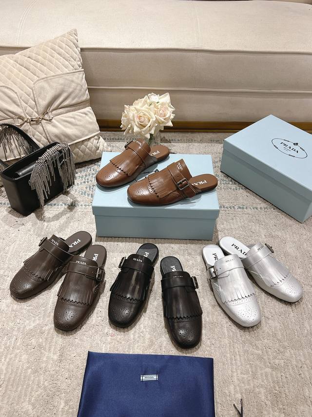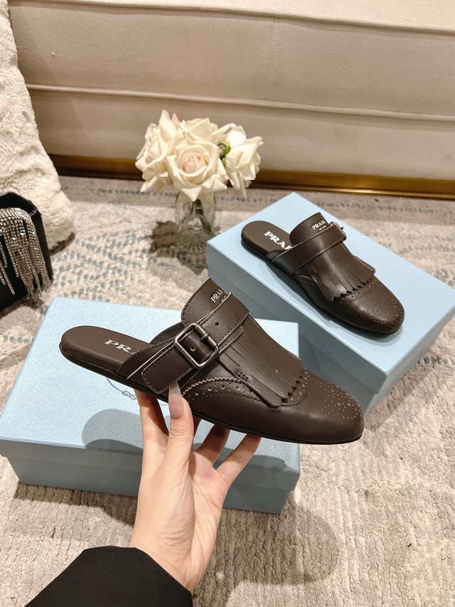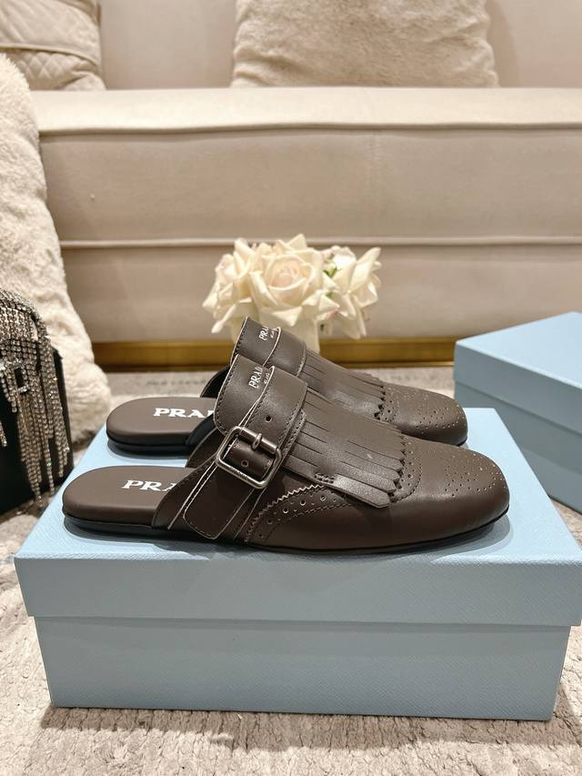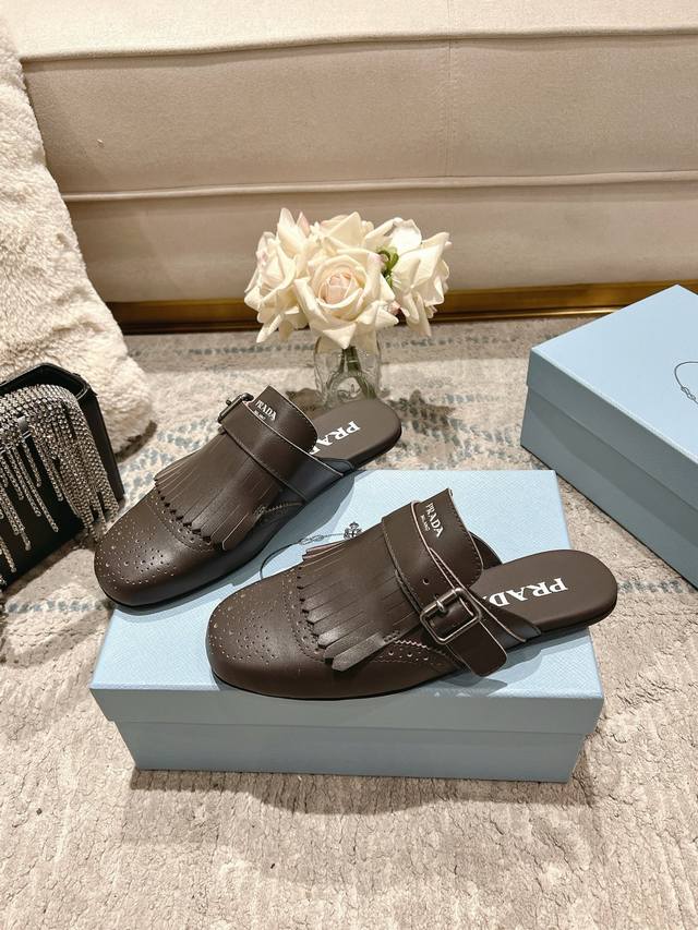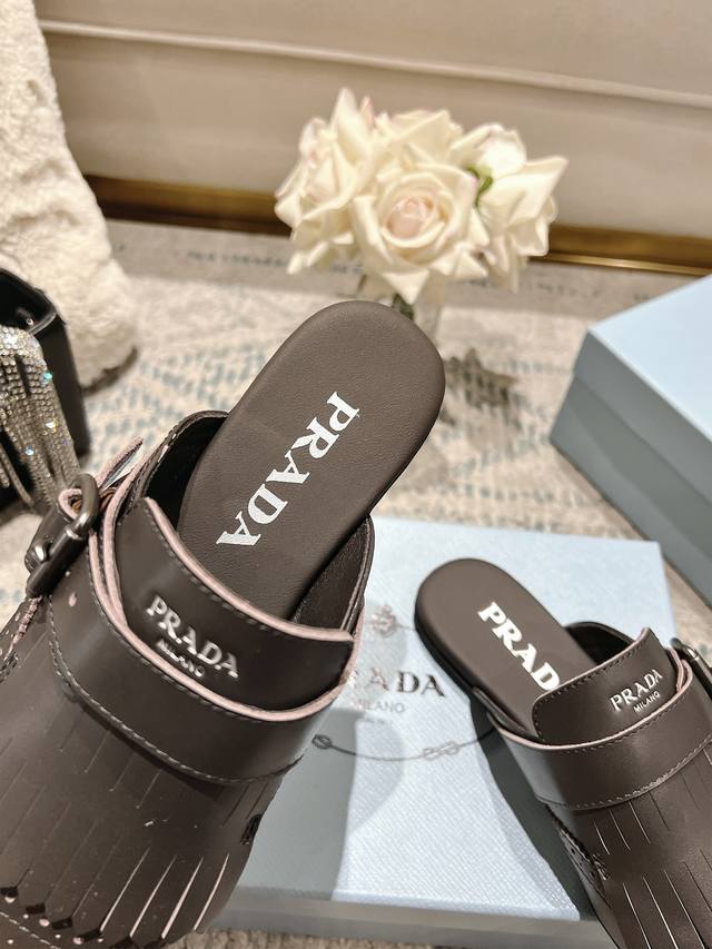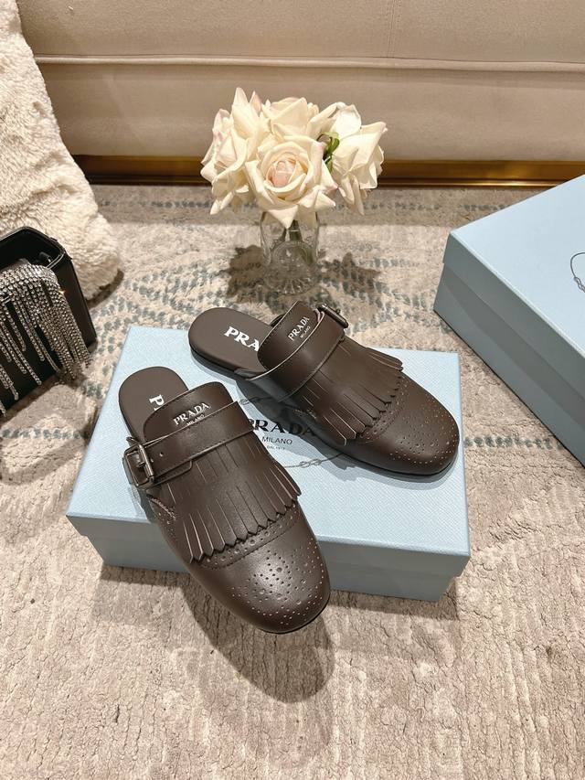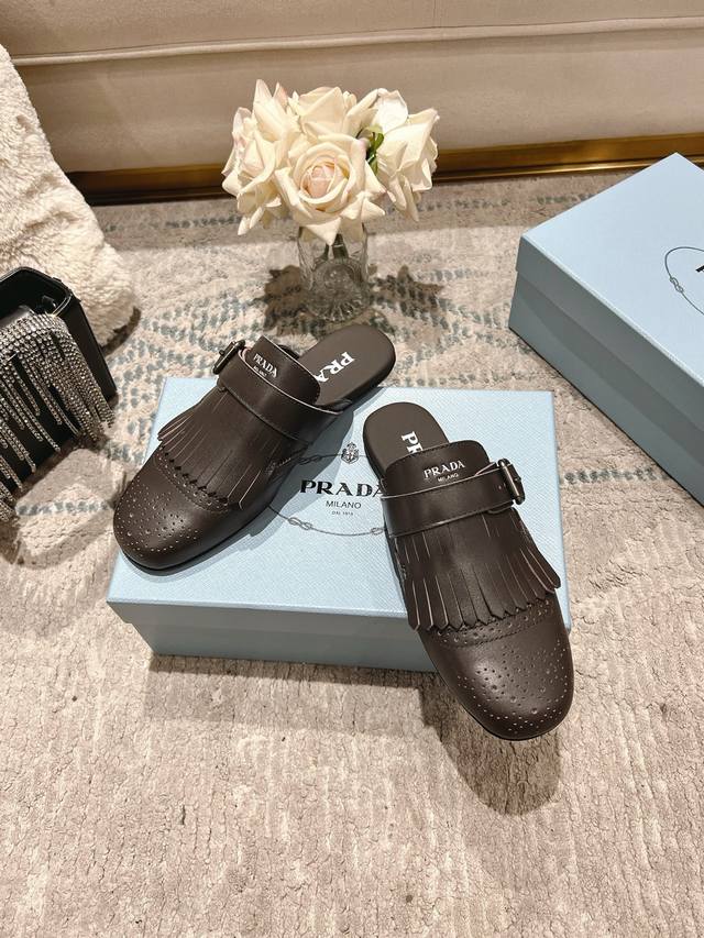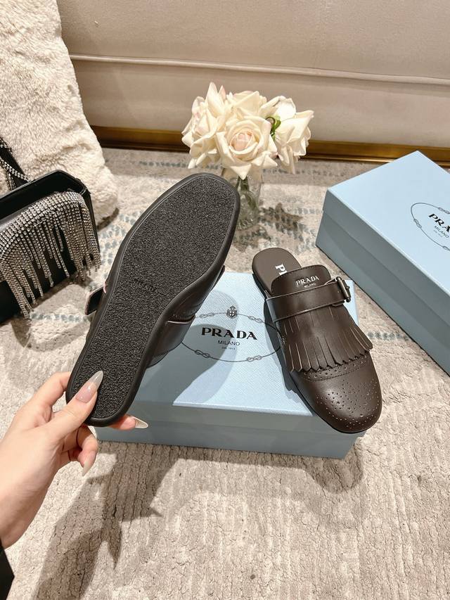 Prad已认证5 普拉达 2025春新品Prad拖鞋走秀款。 复古流苏拖鞋爆款!复古感时髦满满 随意百搭 时尚休闲 独到味道,人人都爱也轻松驾驭 每年都会爆.足