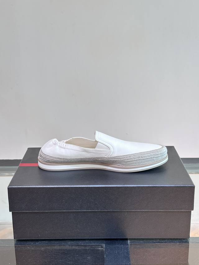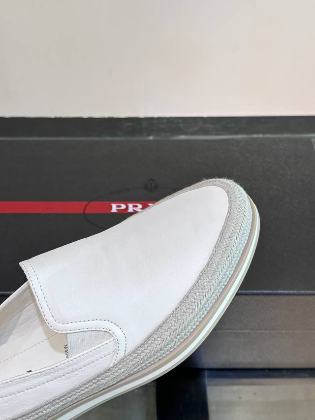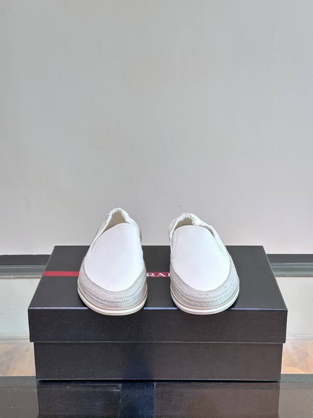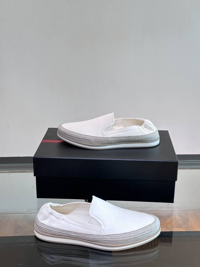 Prad*普拉达休闲编织套脚懒人男鞋,进口牛皮打造,内里垫脚均为小牛皮,原厂专用大底,后跟松紧橡筋设计,春夏必备单品! 元 Size:39-44 38.45定做
