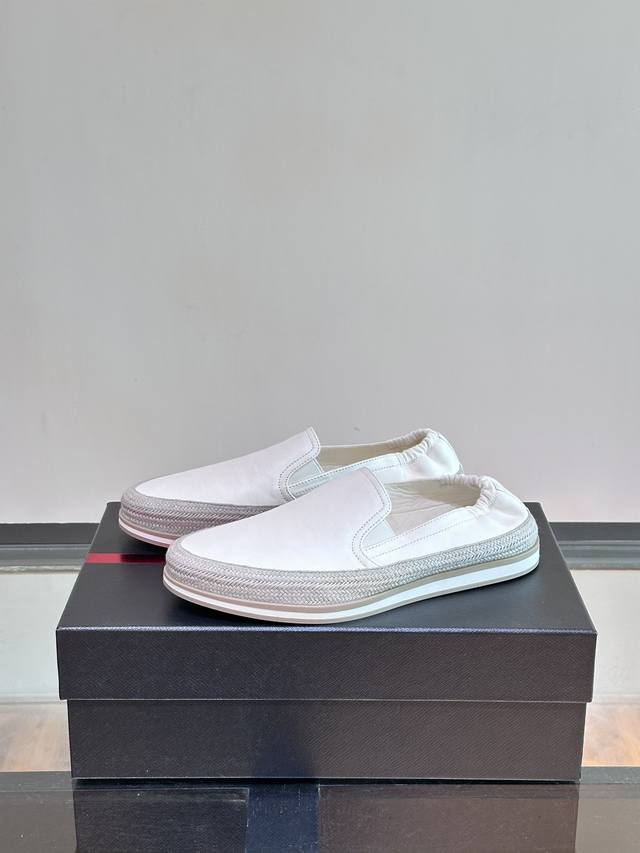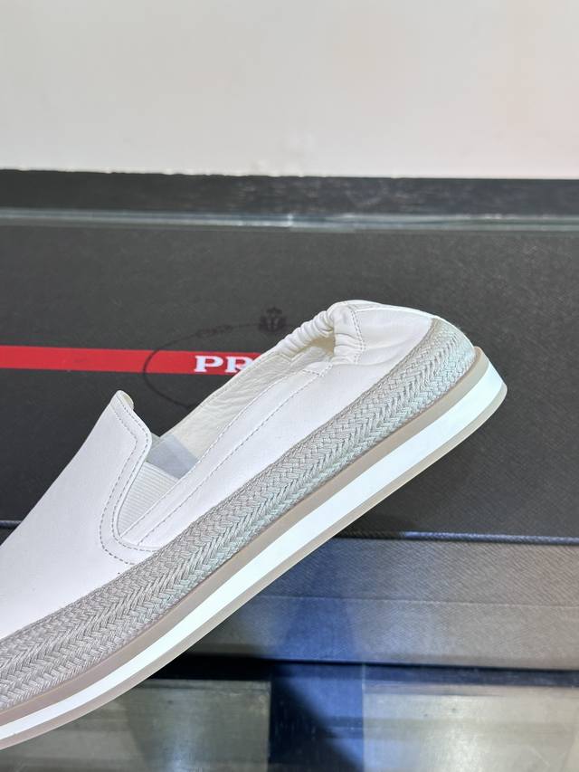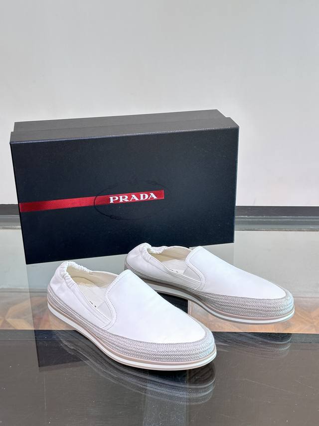 Prad*普拉达休闲编织套脚懒人男鞋,进口牛皮打造,内里垫脚均为小牛皮,原厂专用大底,后跟松紧橡筋设计,春夏必备单品!
