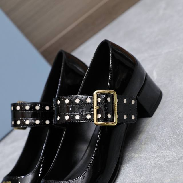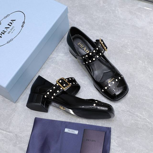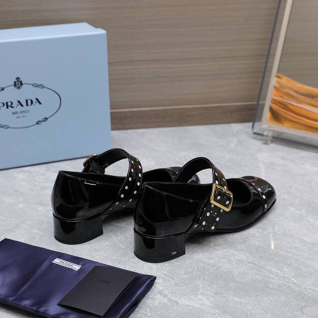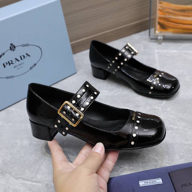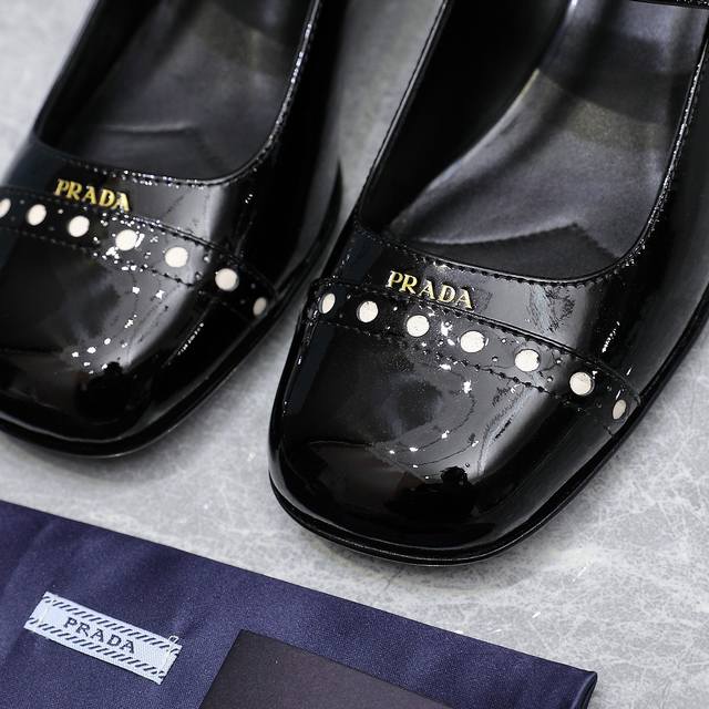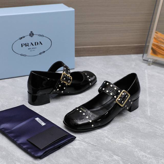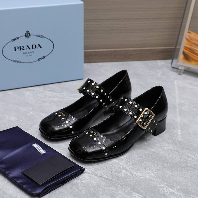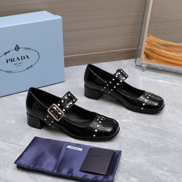 Prad*普拉达 25年早春新款粗跟单鞋女鞋圆头蝴蝶结玛丽珍